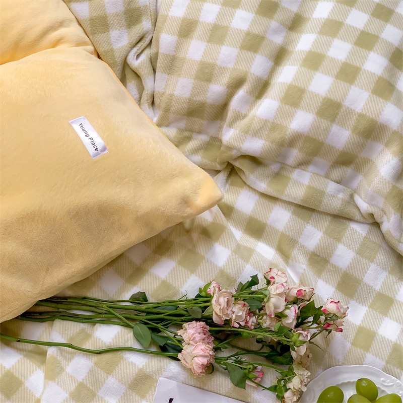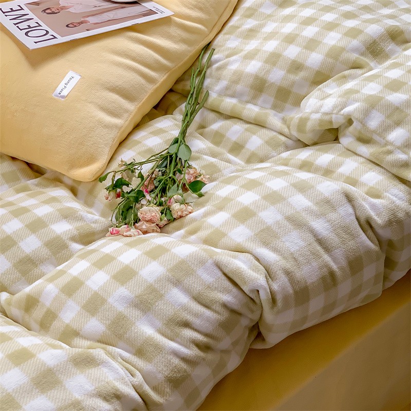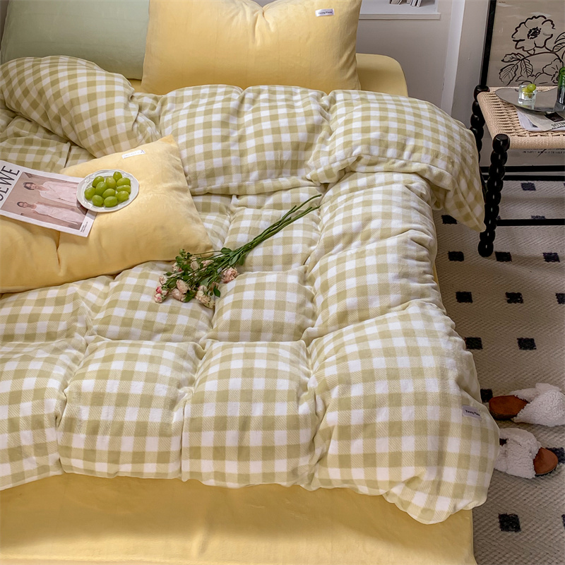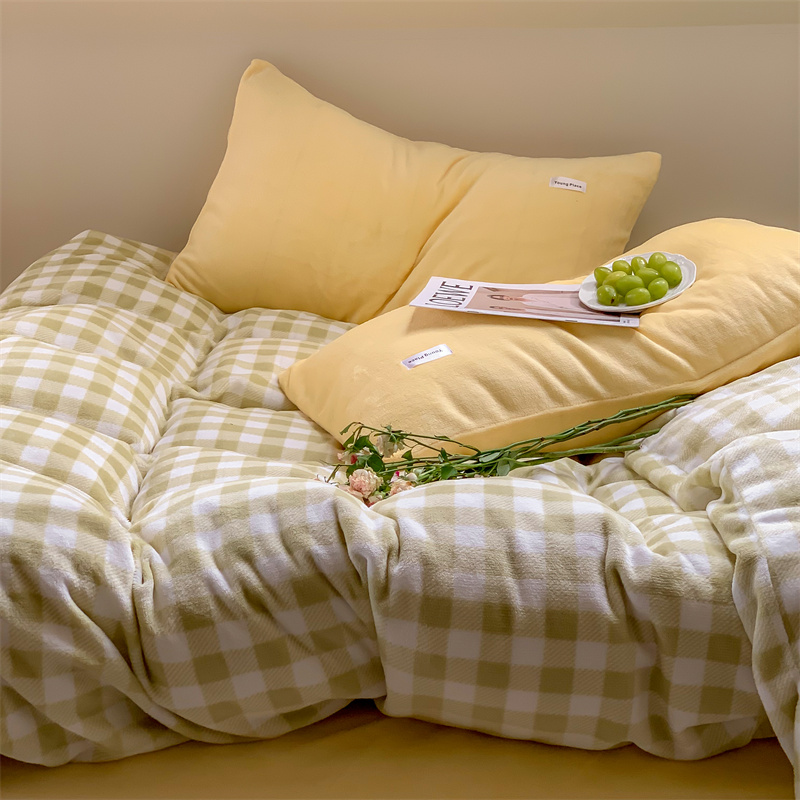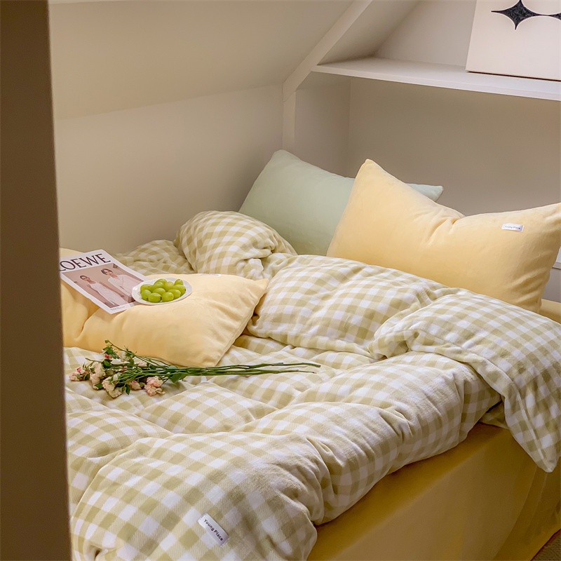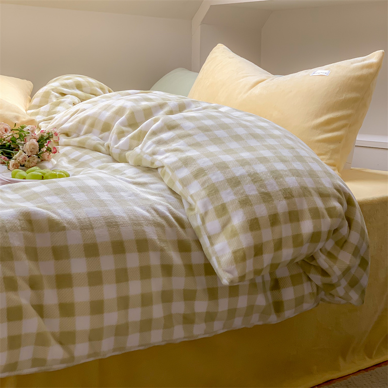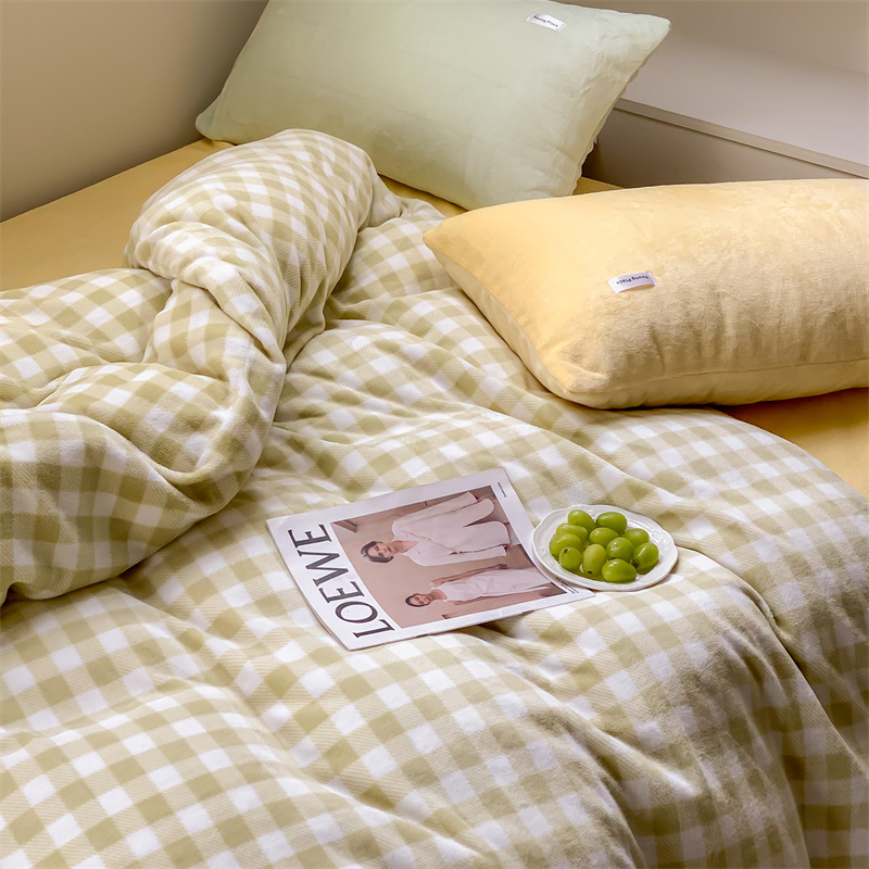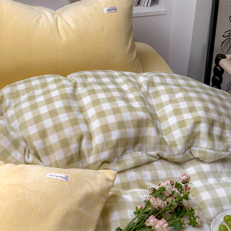 商品名称:洋铭区2022新款小清新撞色系列绒四件套 青柠格