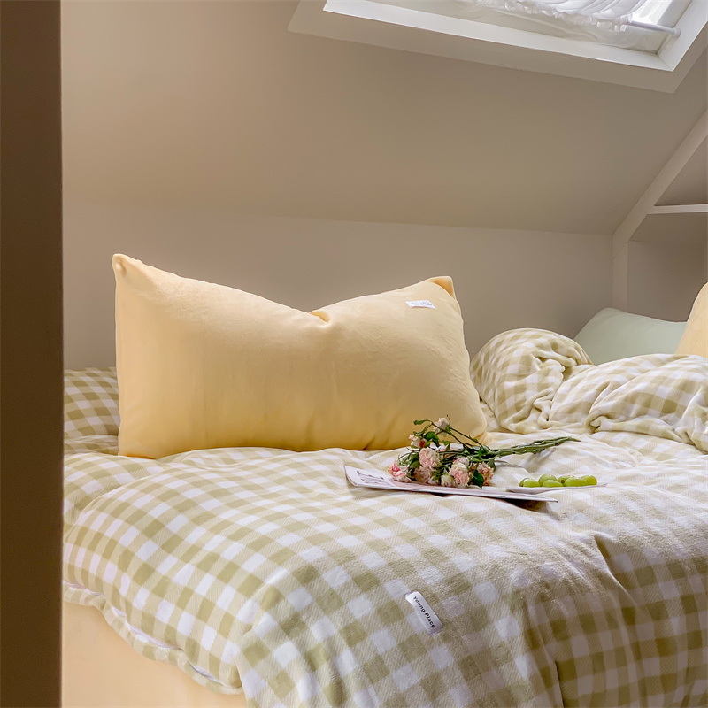 洋铭区2022新款小清新撞色系列绒四件套 青柠格