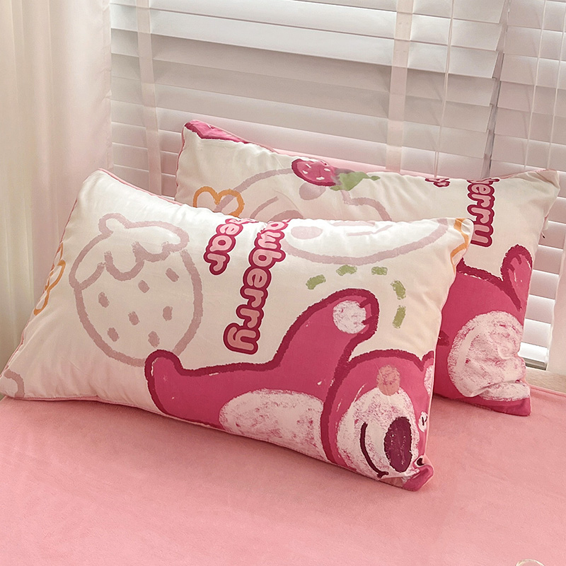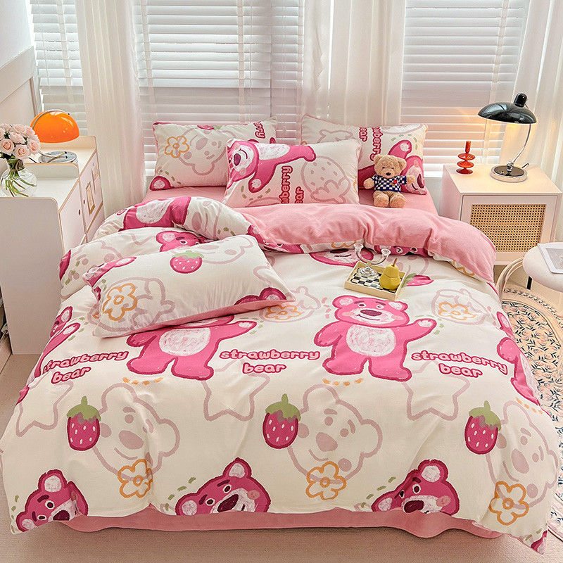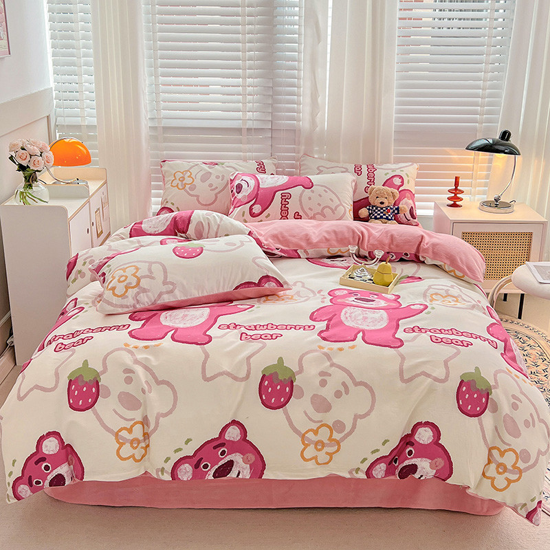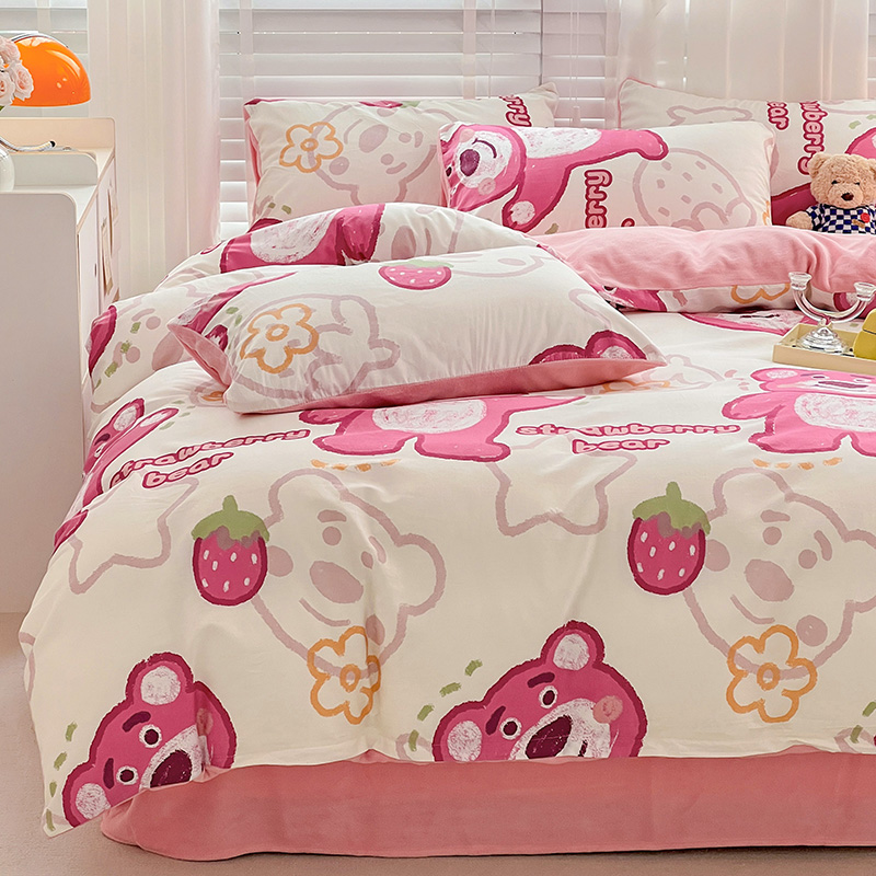 金丝鸟 2022全棉印花加牛奶绒四件套 草莓熊