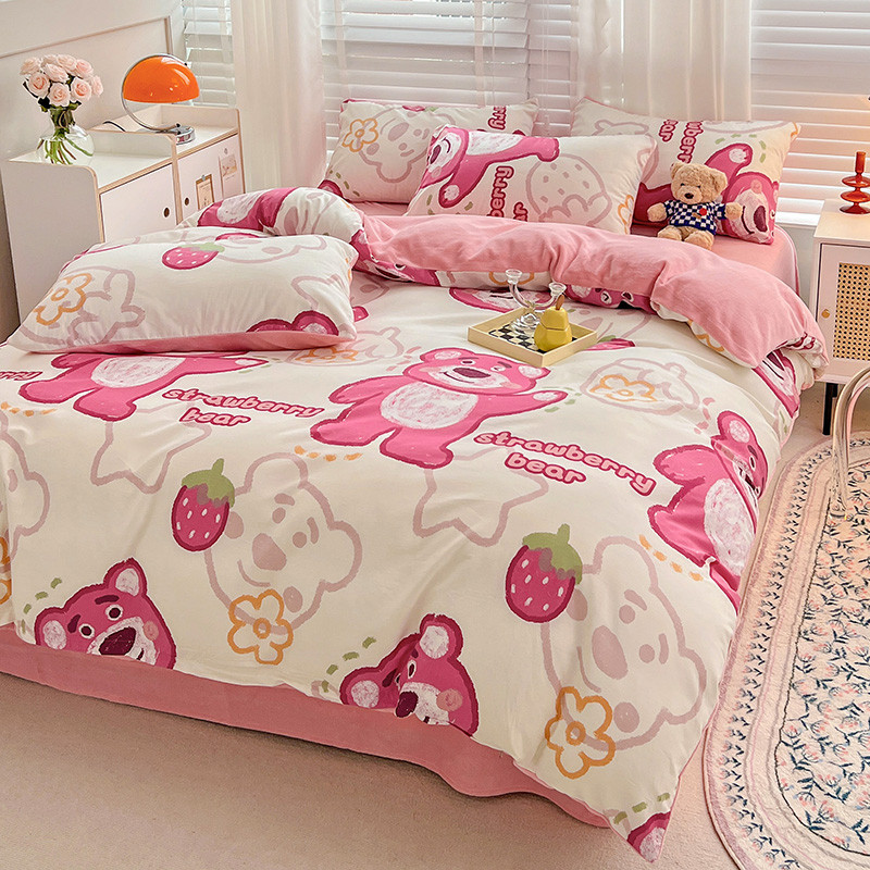 商品名称:金丝鸟 2022全棉印花加牛奶绒四件套 草莓熊