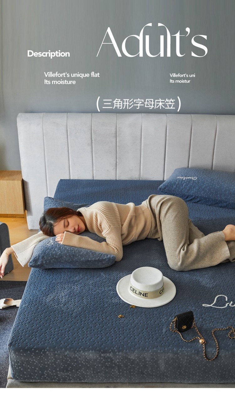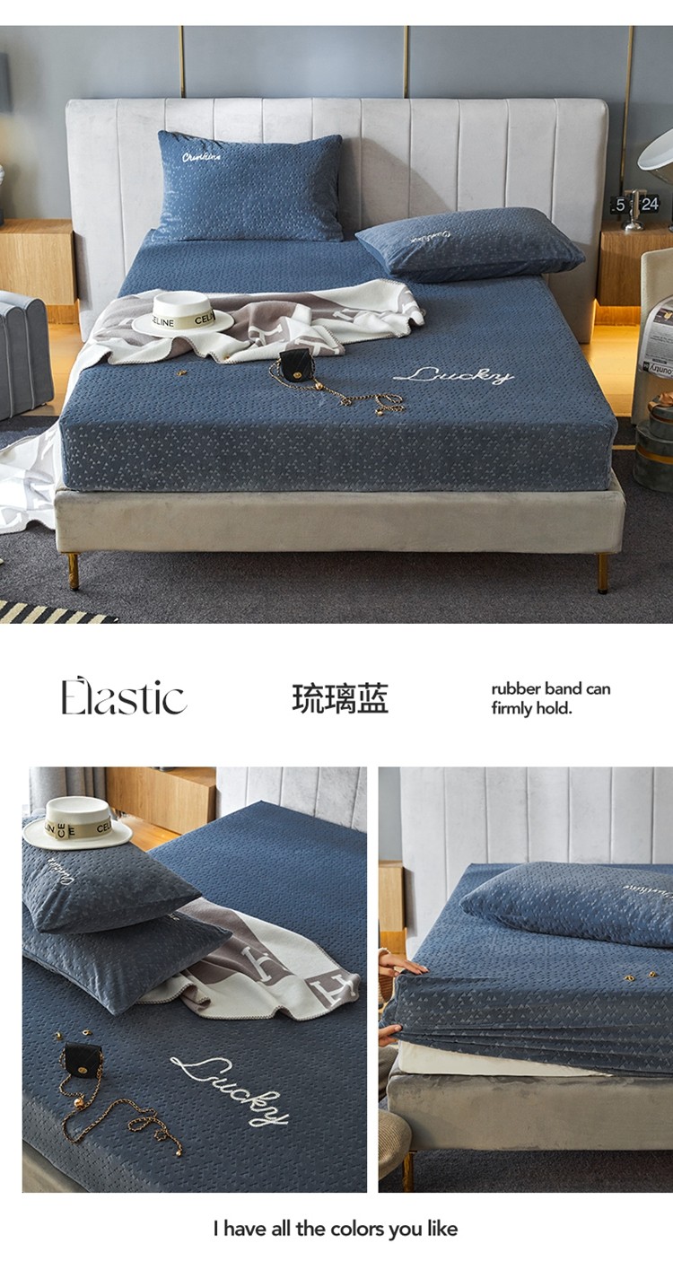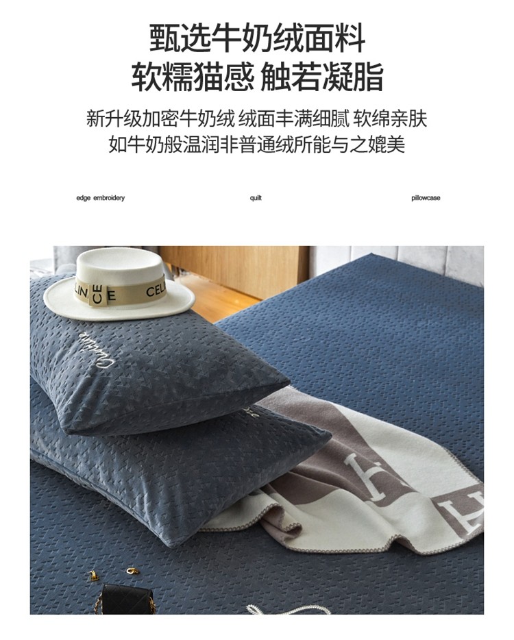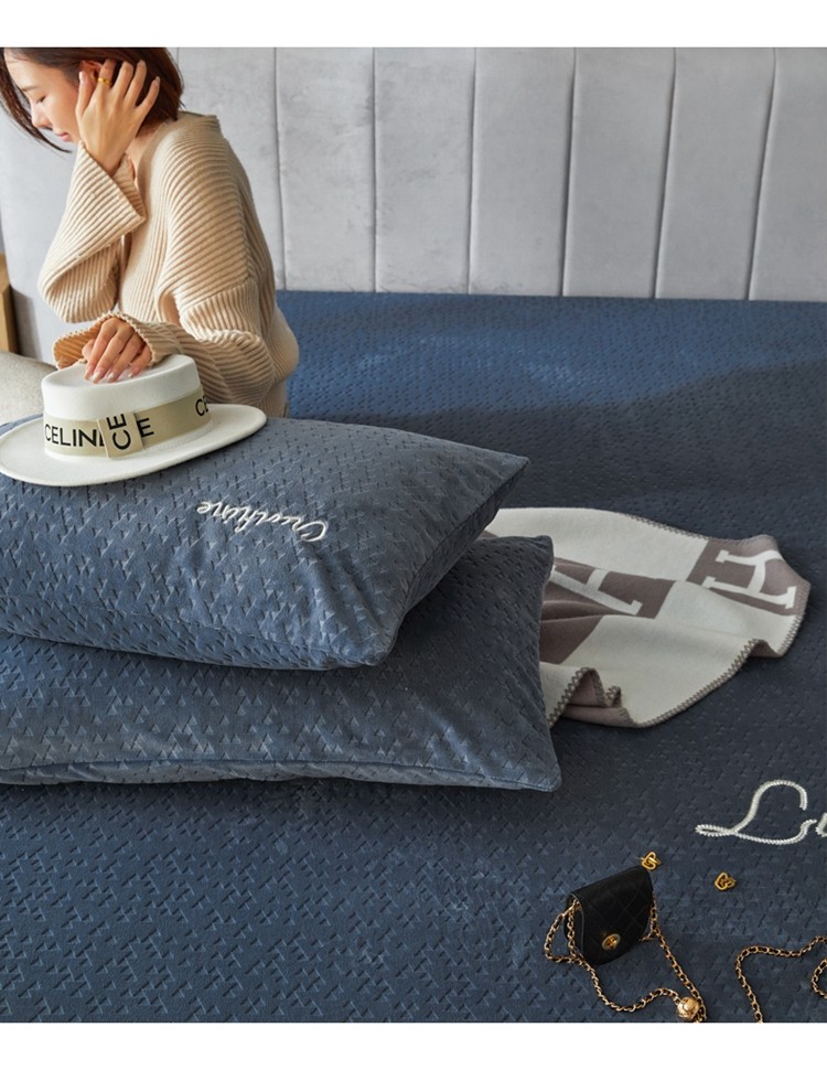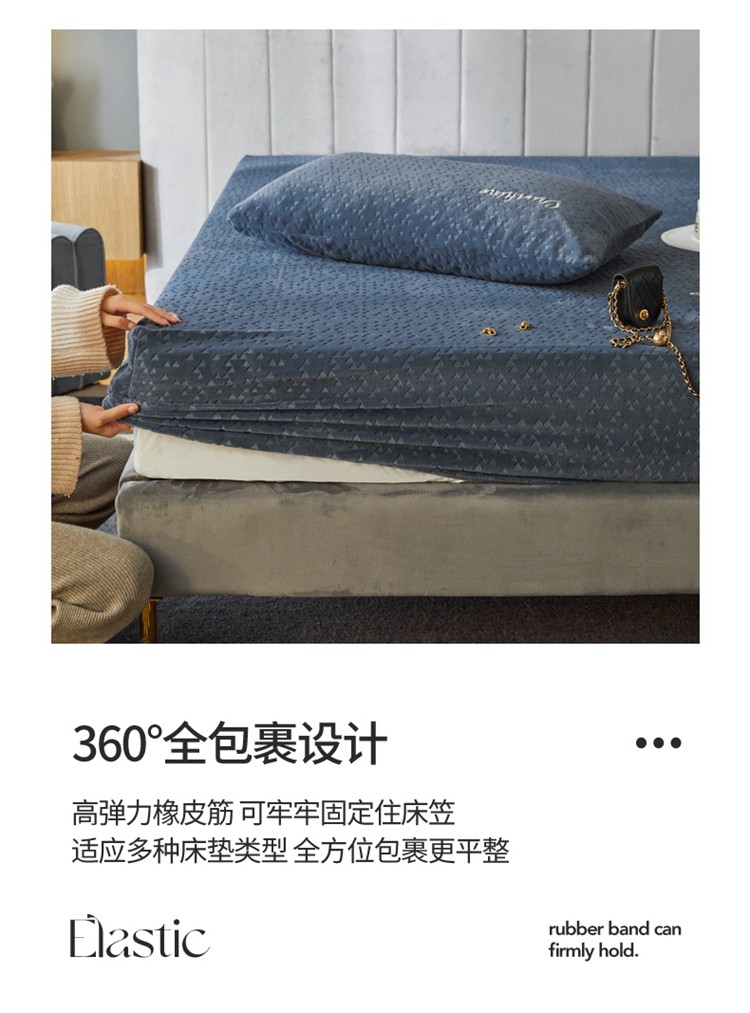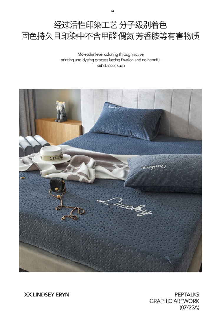 商品名称:铭动 2023新款牛奶绒三角形字母床笠 琉璃蓝