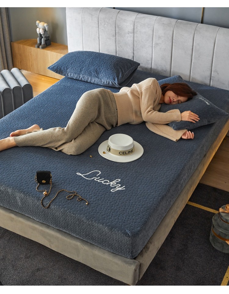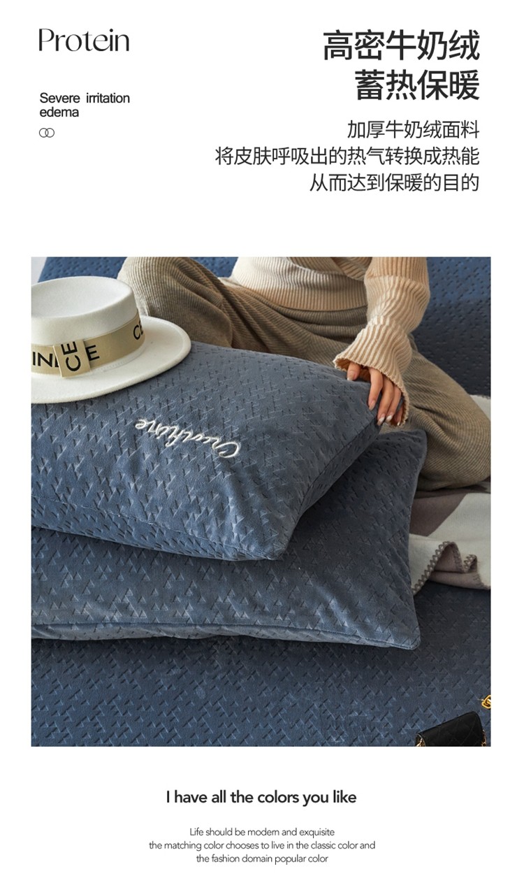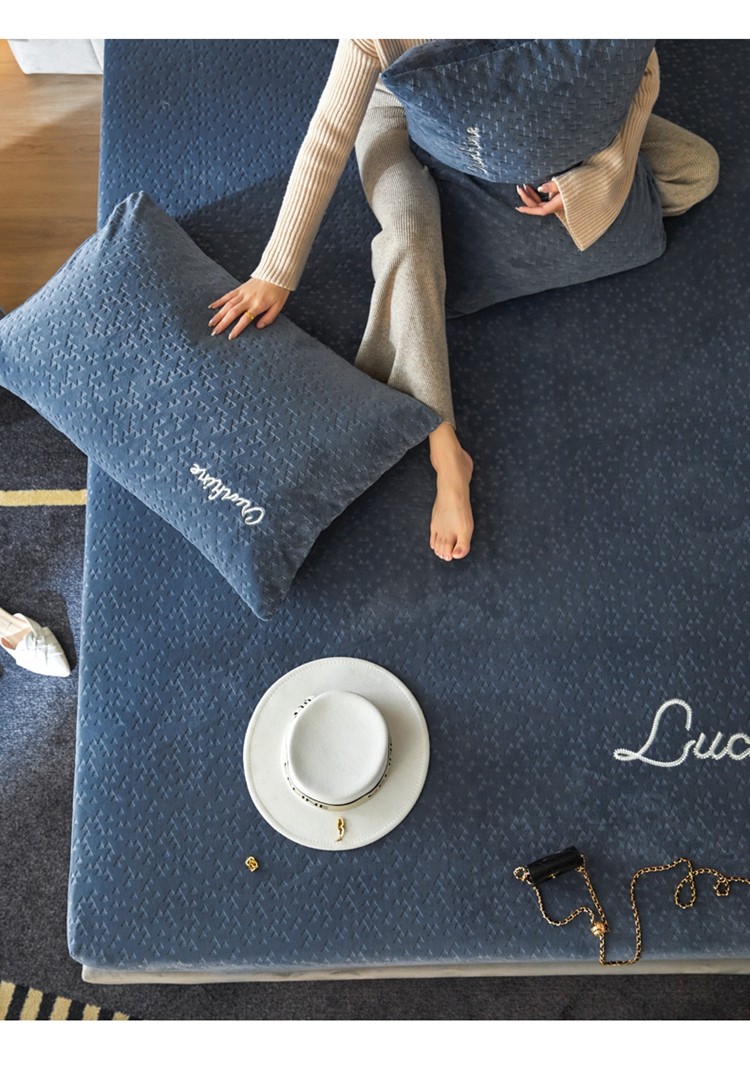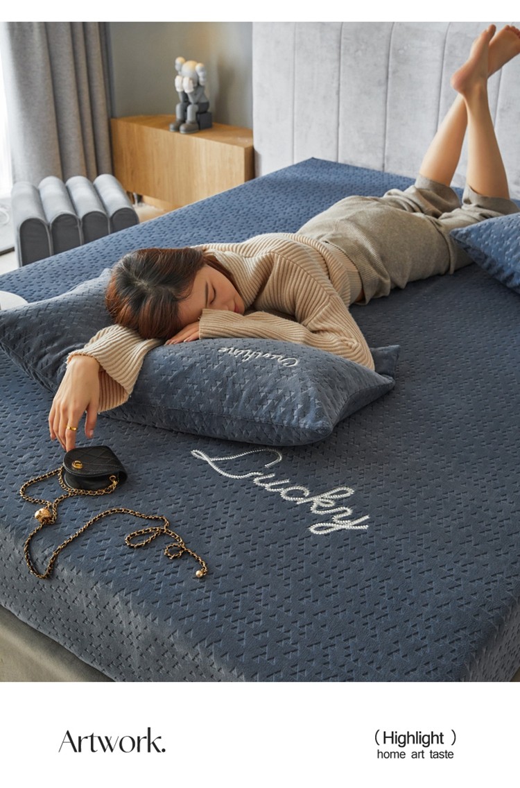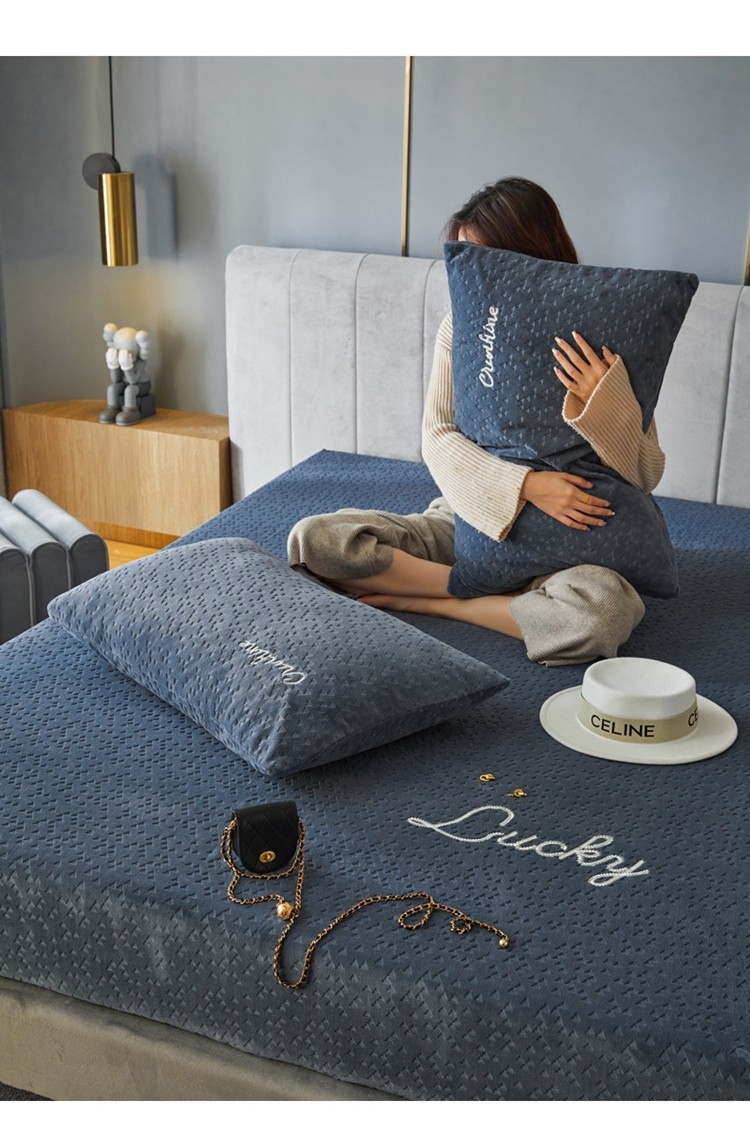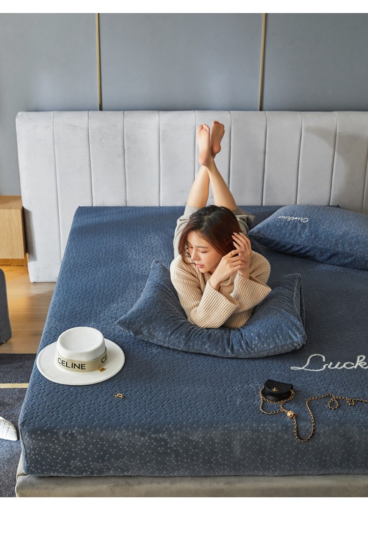商品名称:铭动 2023新款牛奶绒三角形字母床笠 琉璃蓝