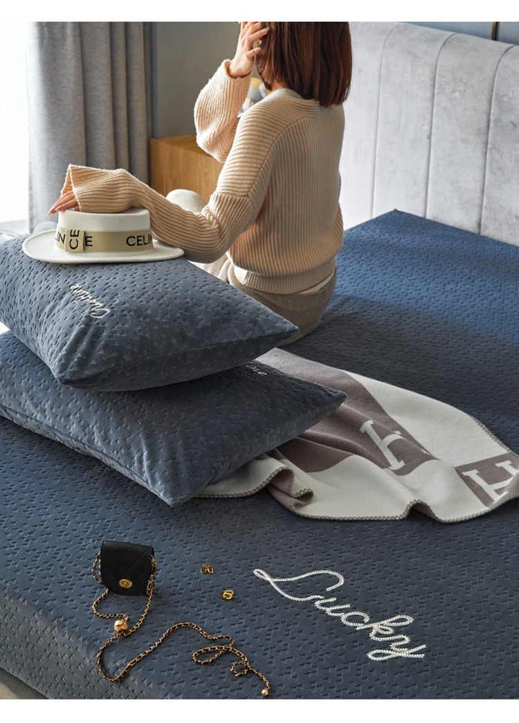 铭动 2023新款牛奶绒三角形字母床笠 琉璃蓝