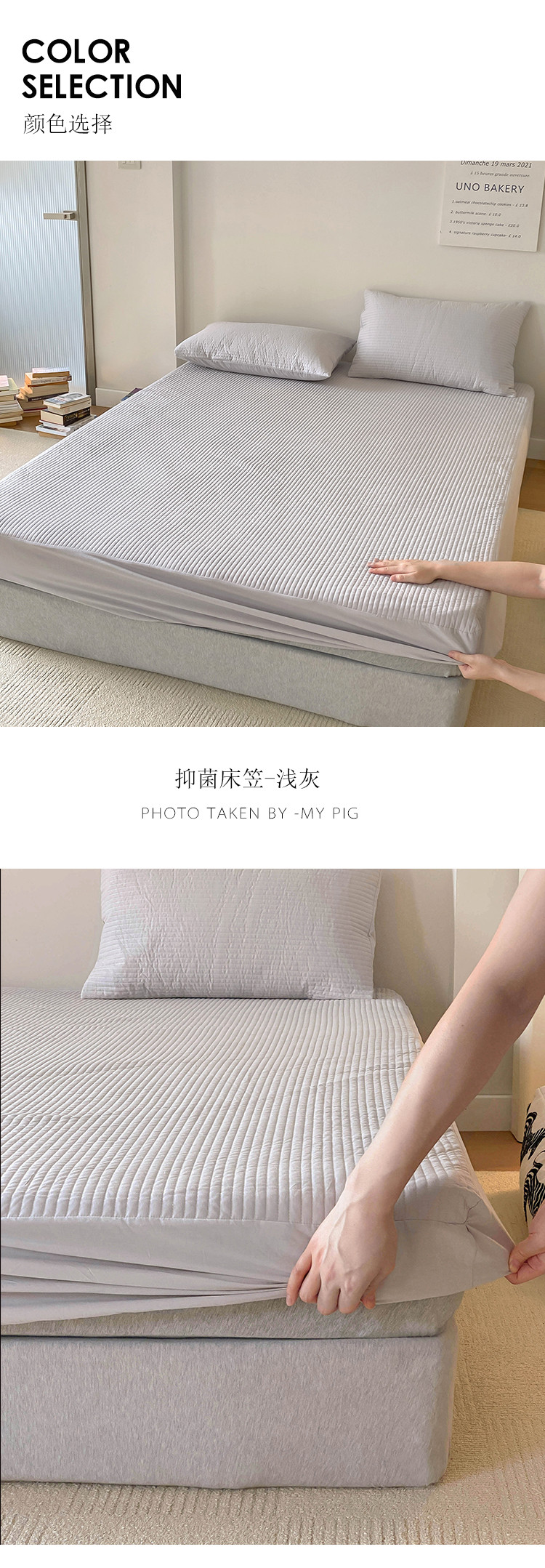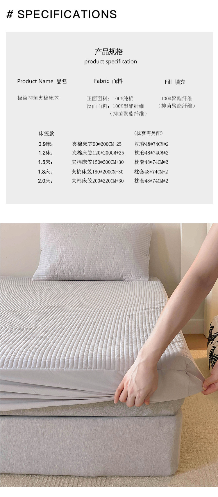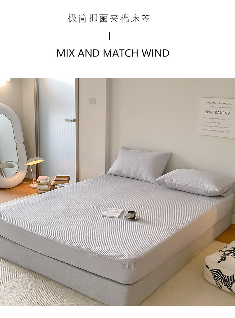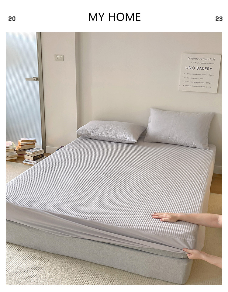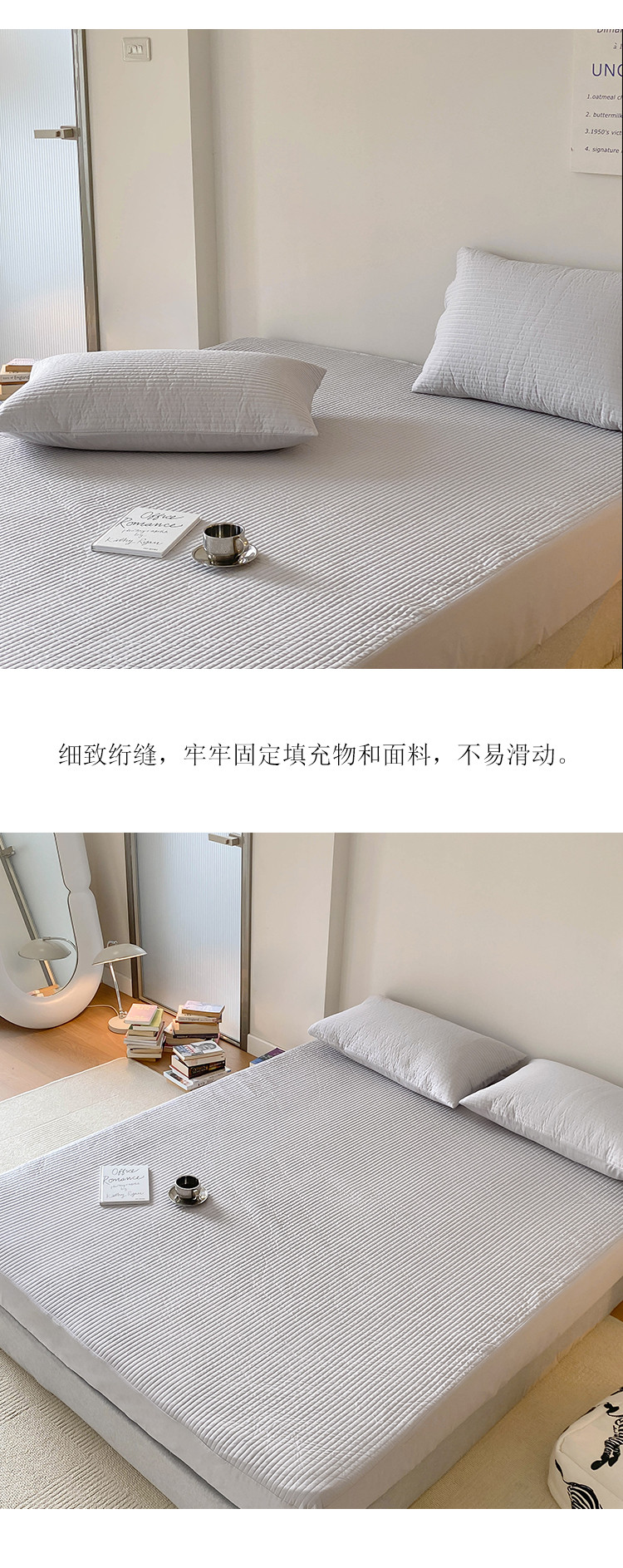 • 91家纺网 家纺一手货源 找家纺 全棉竖条纹夹棉床笠绗缝加厚抑菌填充单品床垫保护套简约