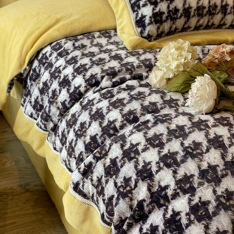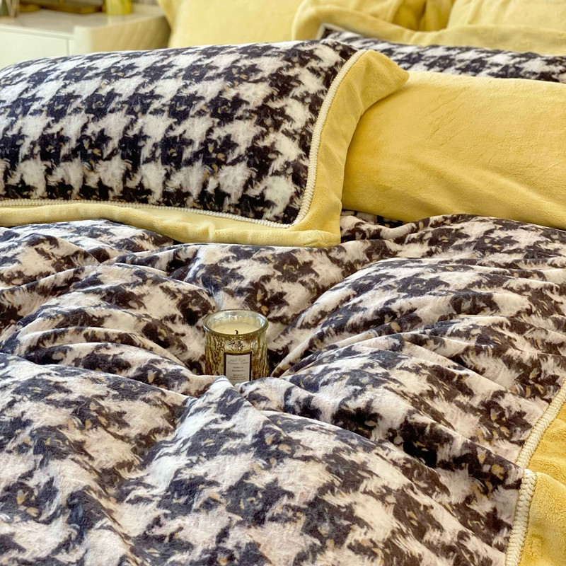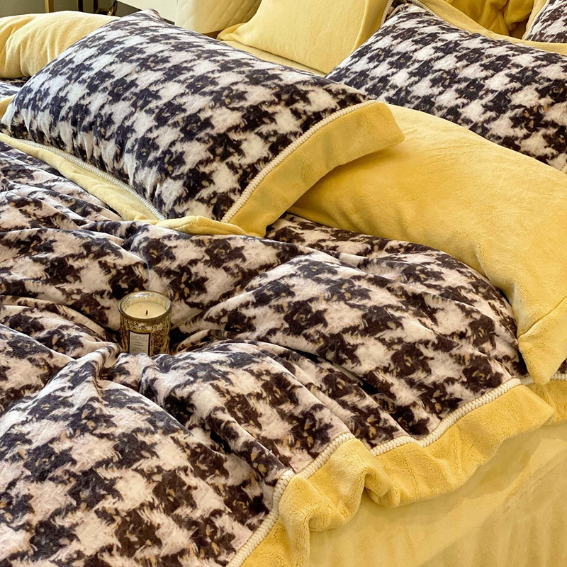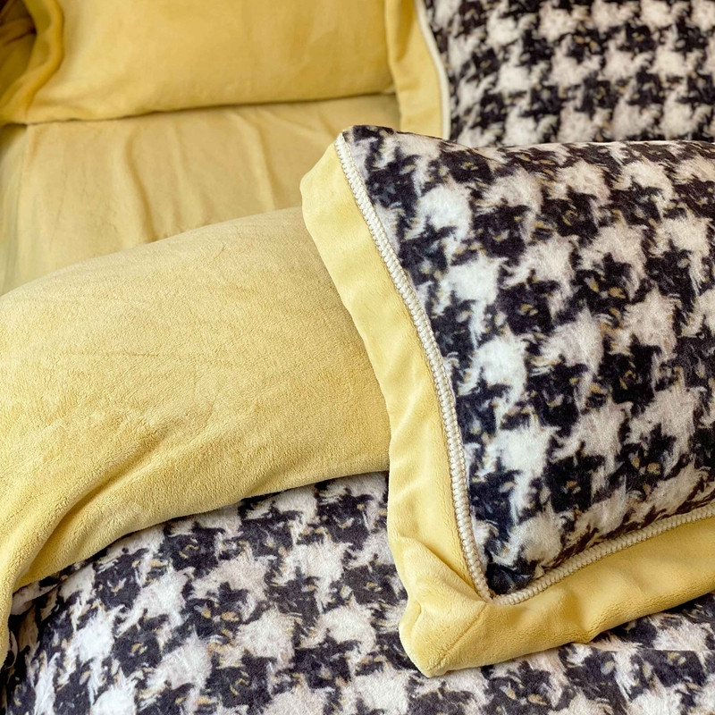 商品名称:太古汇 2022新款牛奶绒印花四件套-托特系列 托特-黄