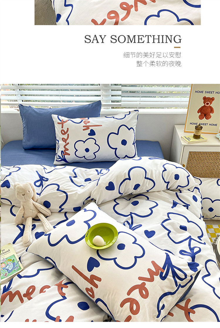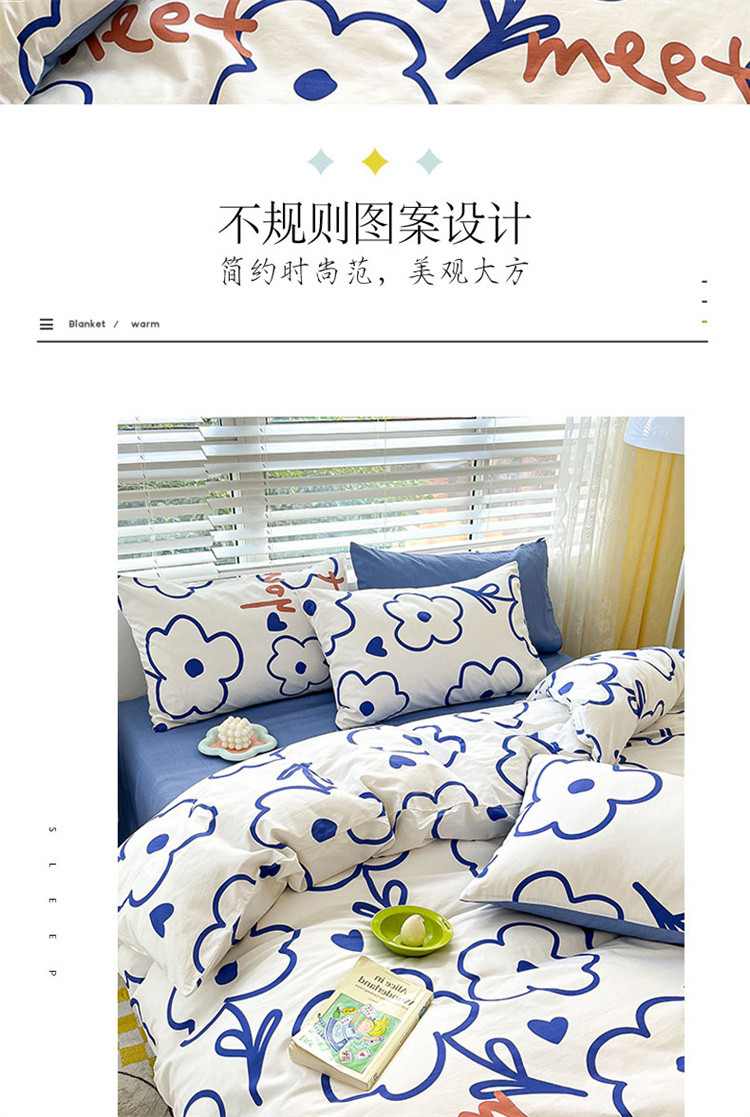 当前位置: 91家纺网 > 商品网购 > 床品套件 > 四件套 > 全棉普通四件套 > 麦伦家居 2023新款全棉简约个性北欧系列四件套-第 一组 蓝印