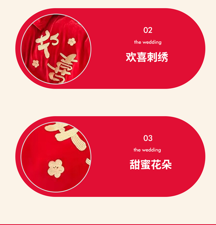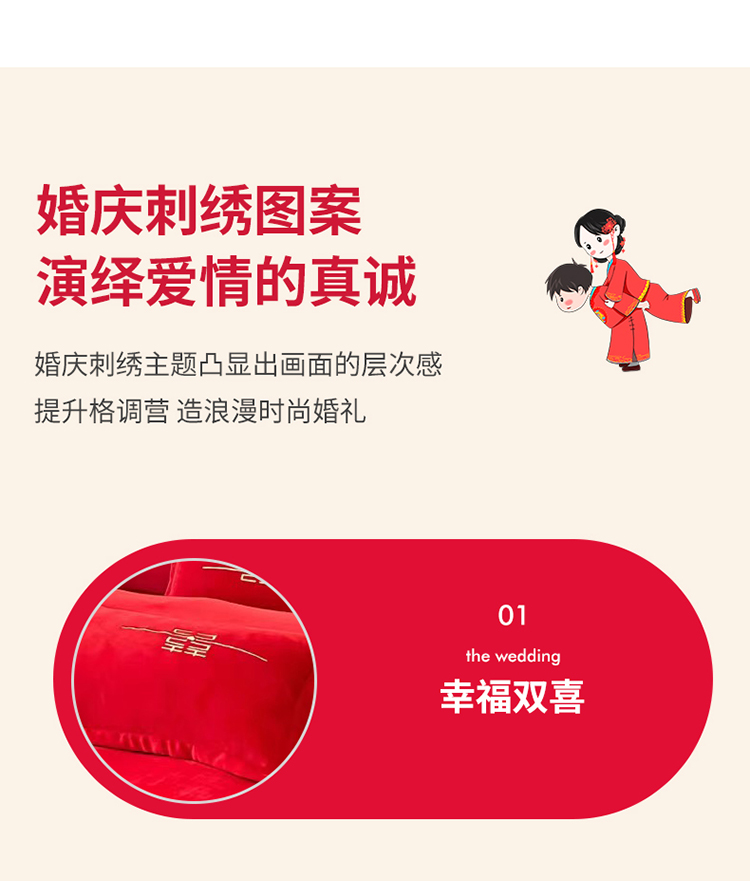 (总)千希家纺 2025新款220克牛奶绒贴布绣婚庆套件(提供买家秀),家有喜事,贴布款-喜樂,吾家有喜