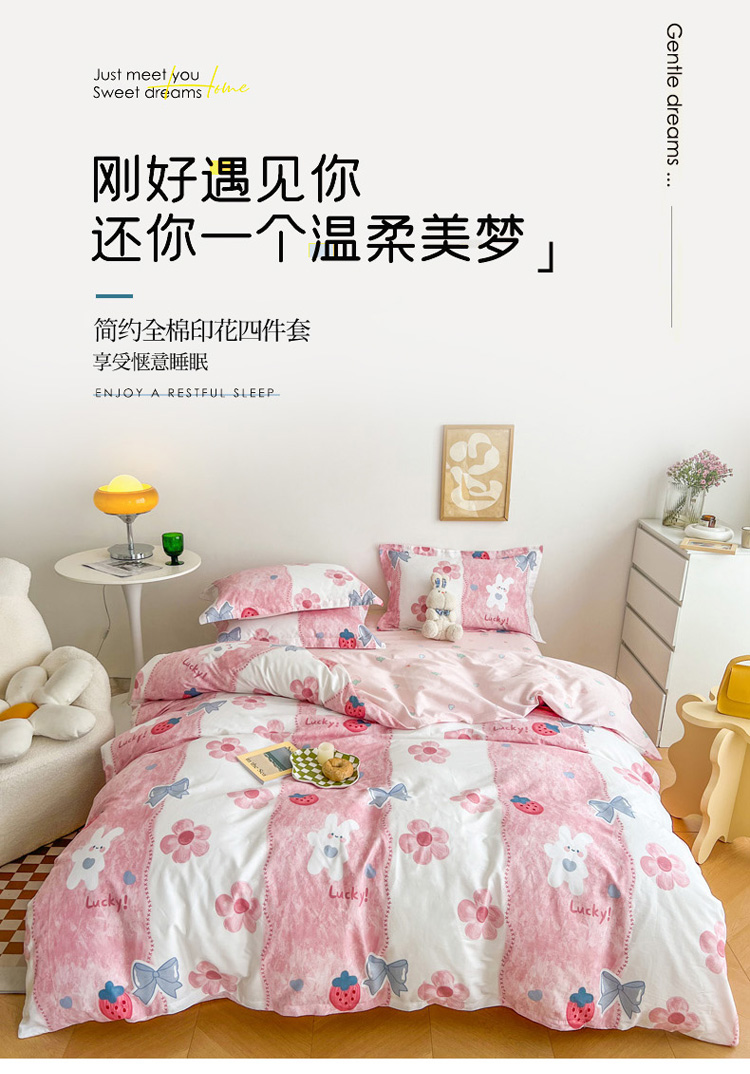 总盛馨家纺 2023新款ins北欧风高支高密全棉喷气小清新纯棉四件套,花丛兔,锦鲤,快乐小狗,梦幻,梦境小兔,入夏,若微,溪沐,叶墨新晨,樱桃兔,星球家园,草莓兔,花粉兔,花花小熊,花开富贵,花蓝兔,花胥梦粉,花韵,狂想曲蓝,萌宠乐园,蜜桃公主,莫奈花园蓝,奇妙幻想蓝,曲奇小熊,圣歌娜,诗情画意,桃桃兔,甜蜜小花,文特森 咖,小黄鸭,叶叶小花,油画草莓,丛林家园,粉色花海,可可大草莓,浪漫花朵,满庭花开,漫时光,暖阳紫,郁金香小兔