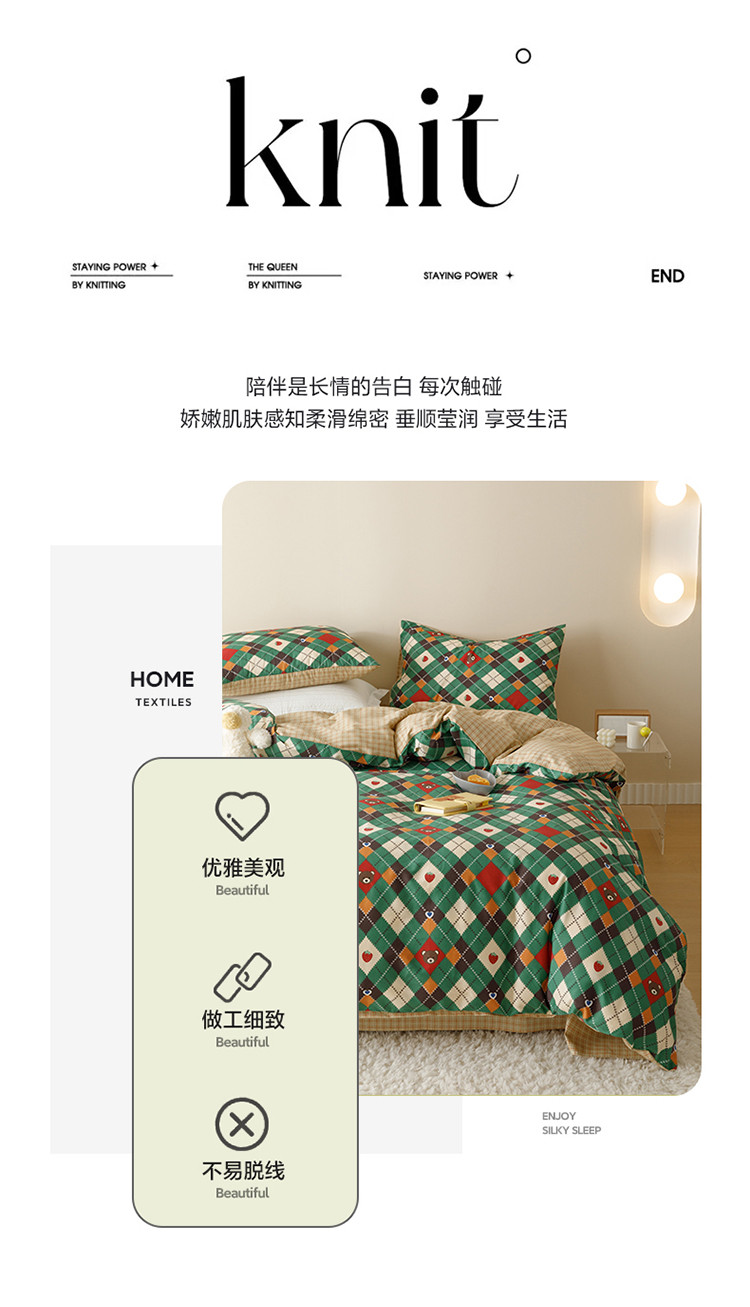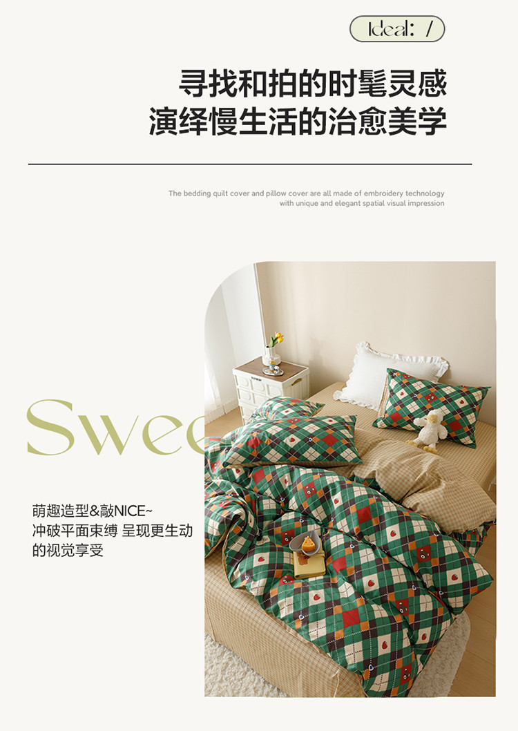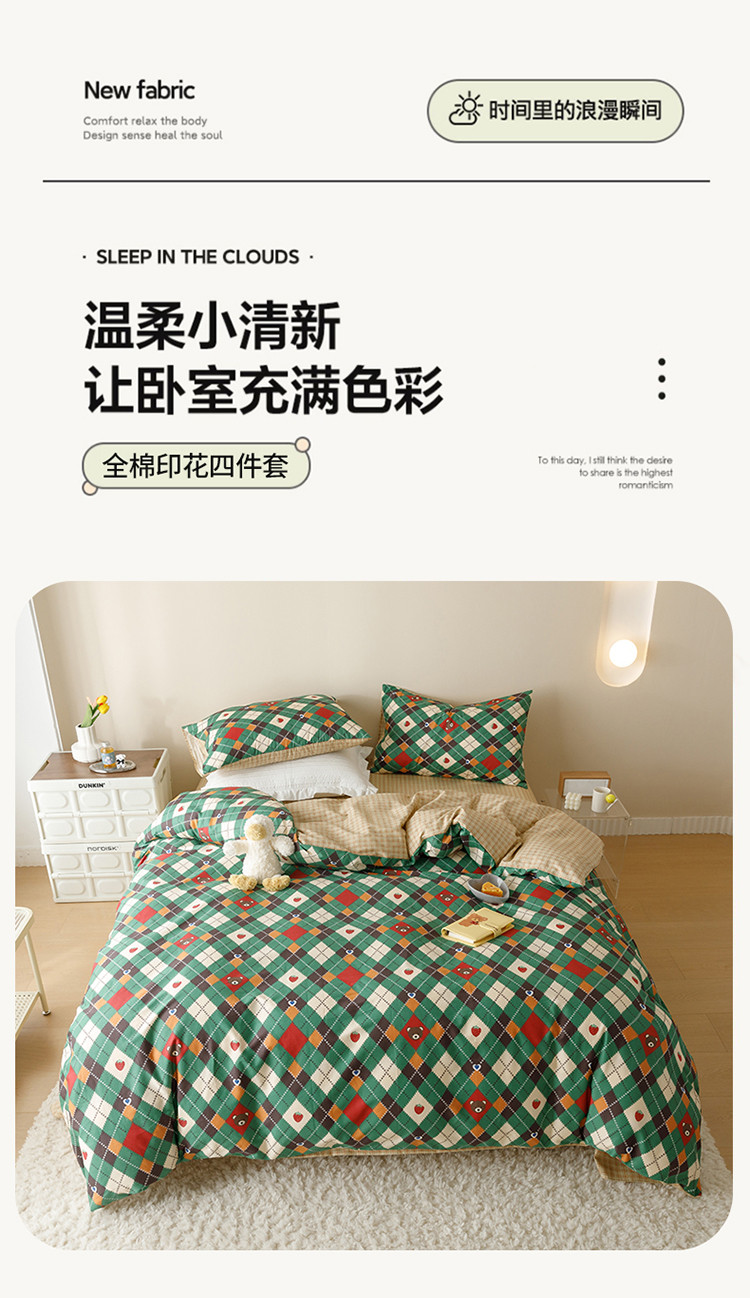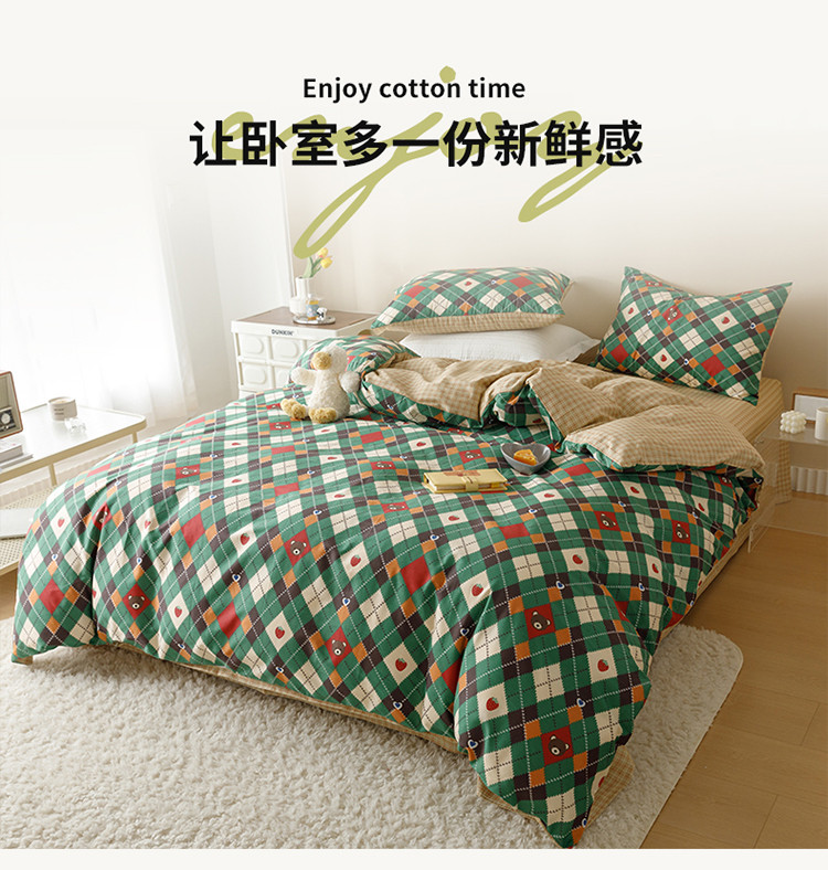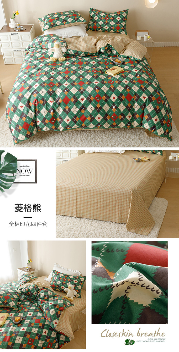 珺柔 2023新款13070全棉四件套-第3批 菱格熊