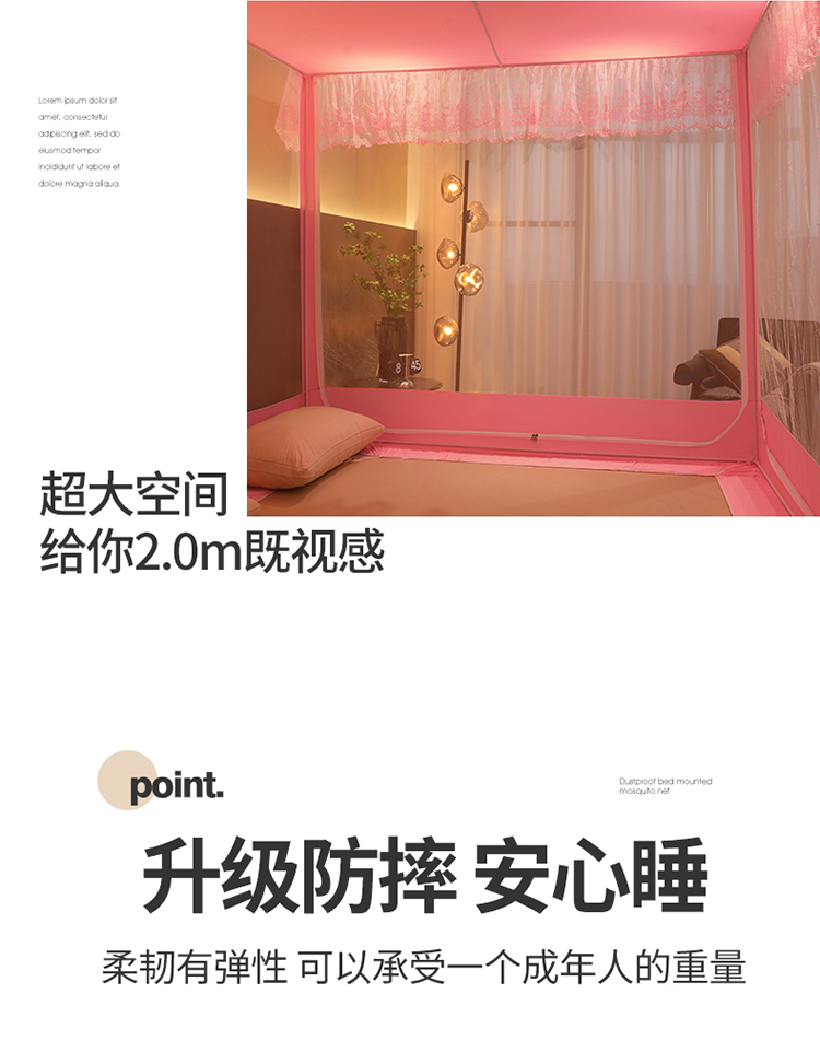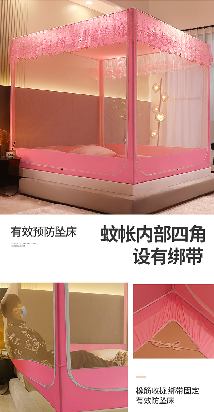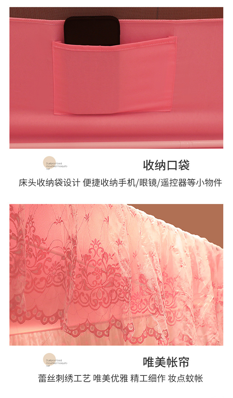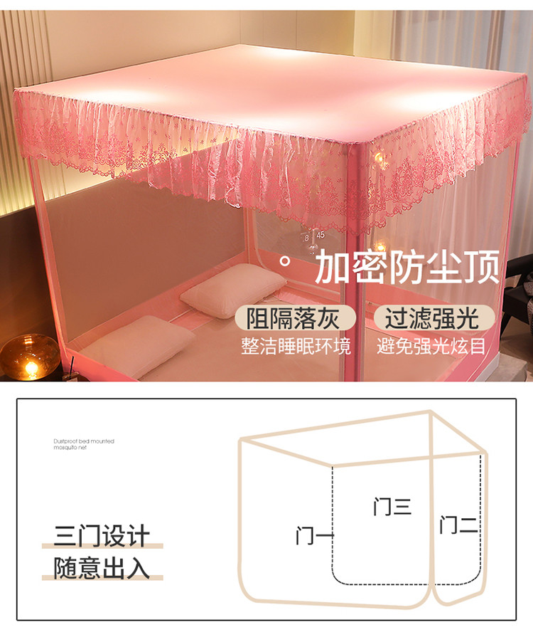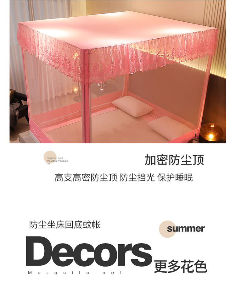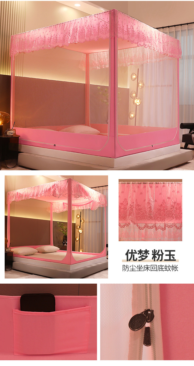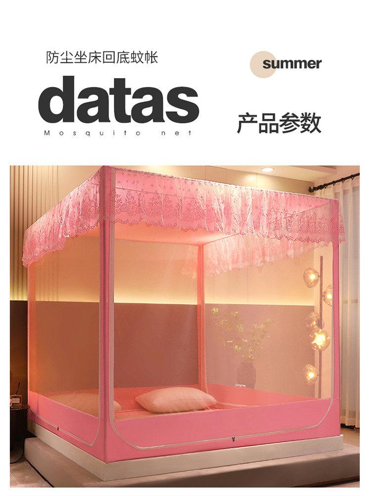 商品名称:千逸虹 2024新款防尘坐床回底蚊帐 优梦-粉玉