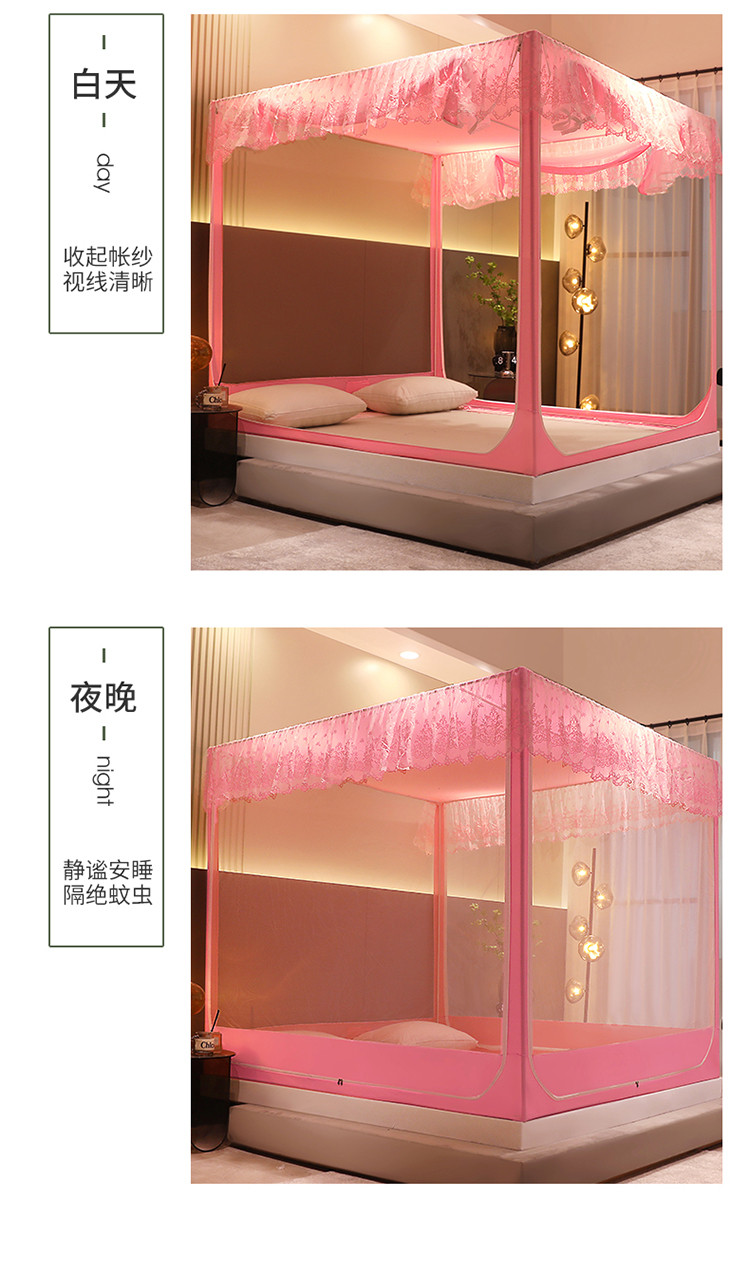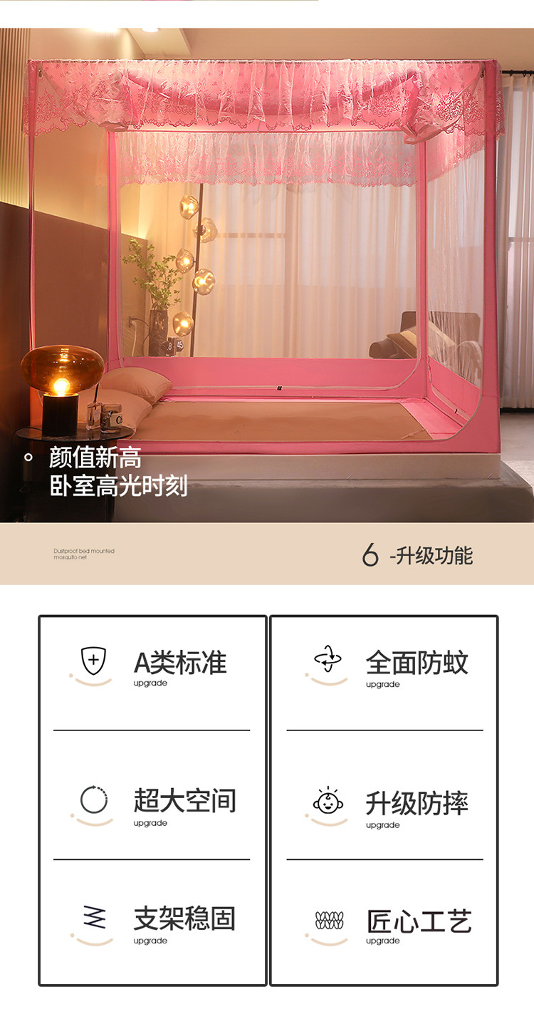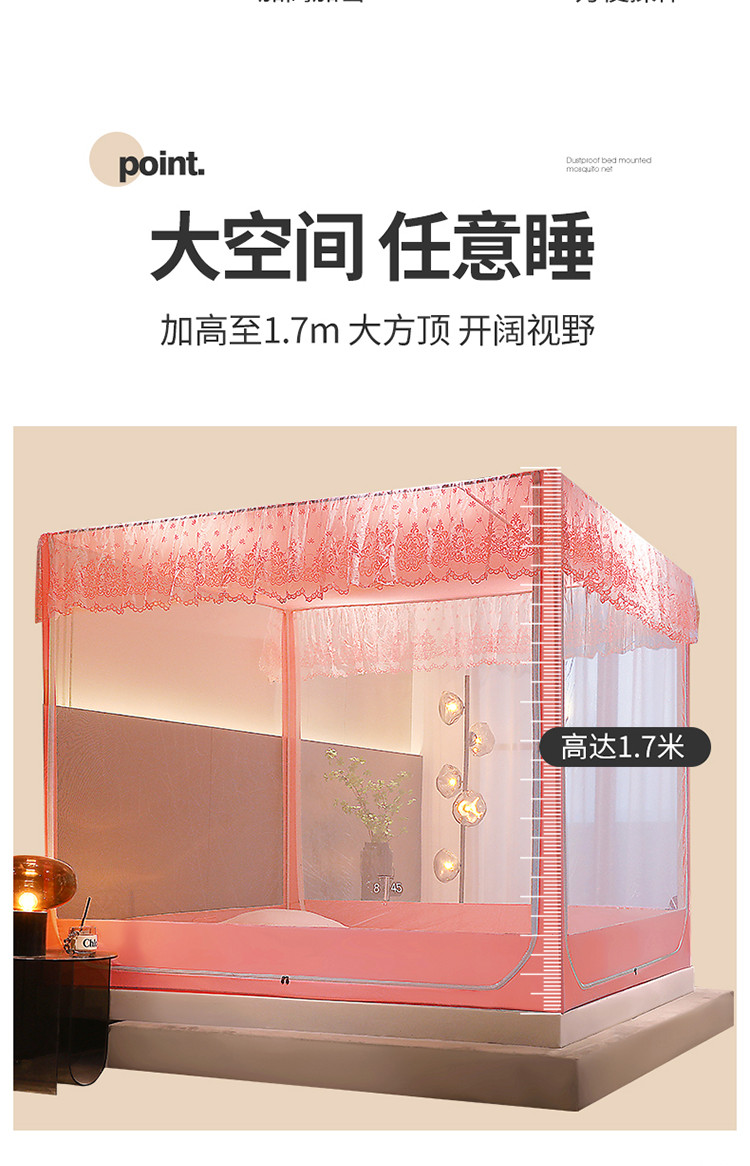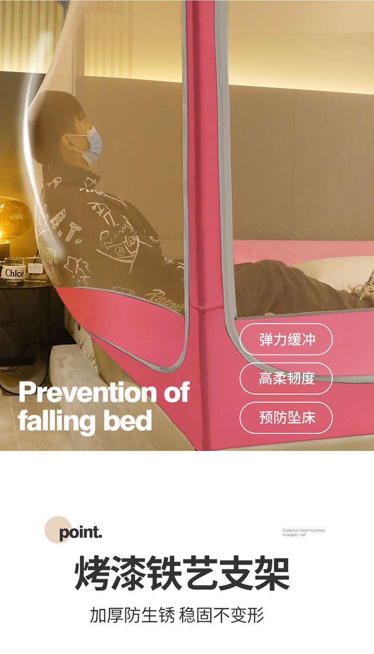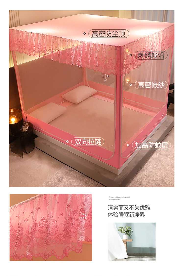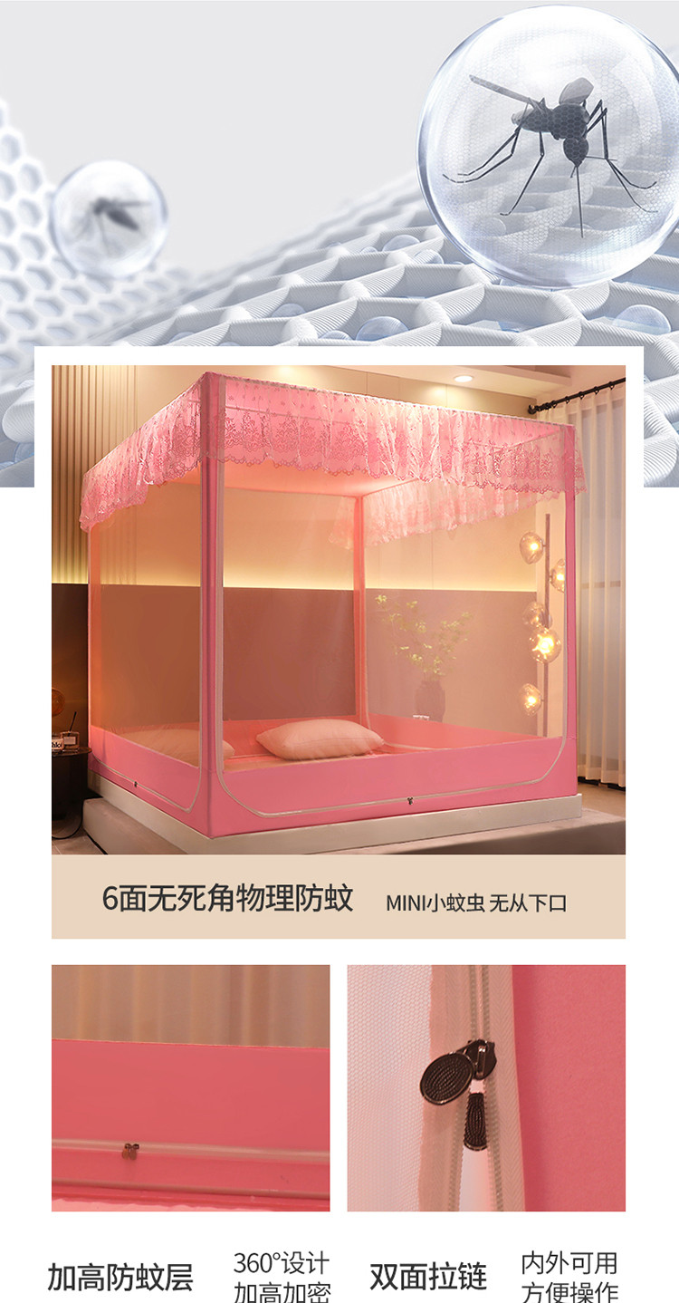 商品名称:千逸虹 2024新款防尘坐床回底蚊帐 优梦-粉玉
