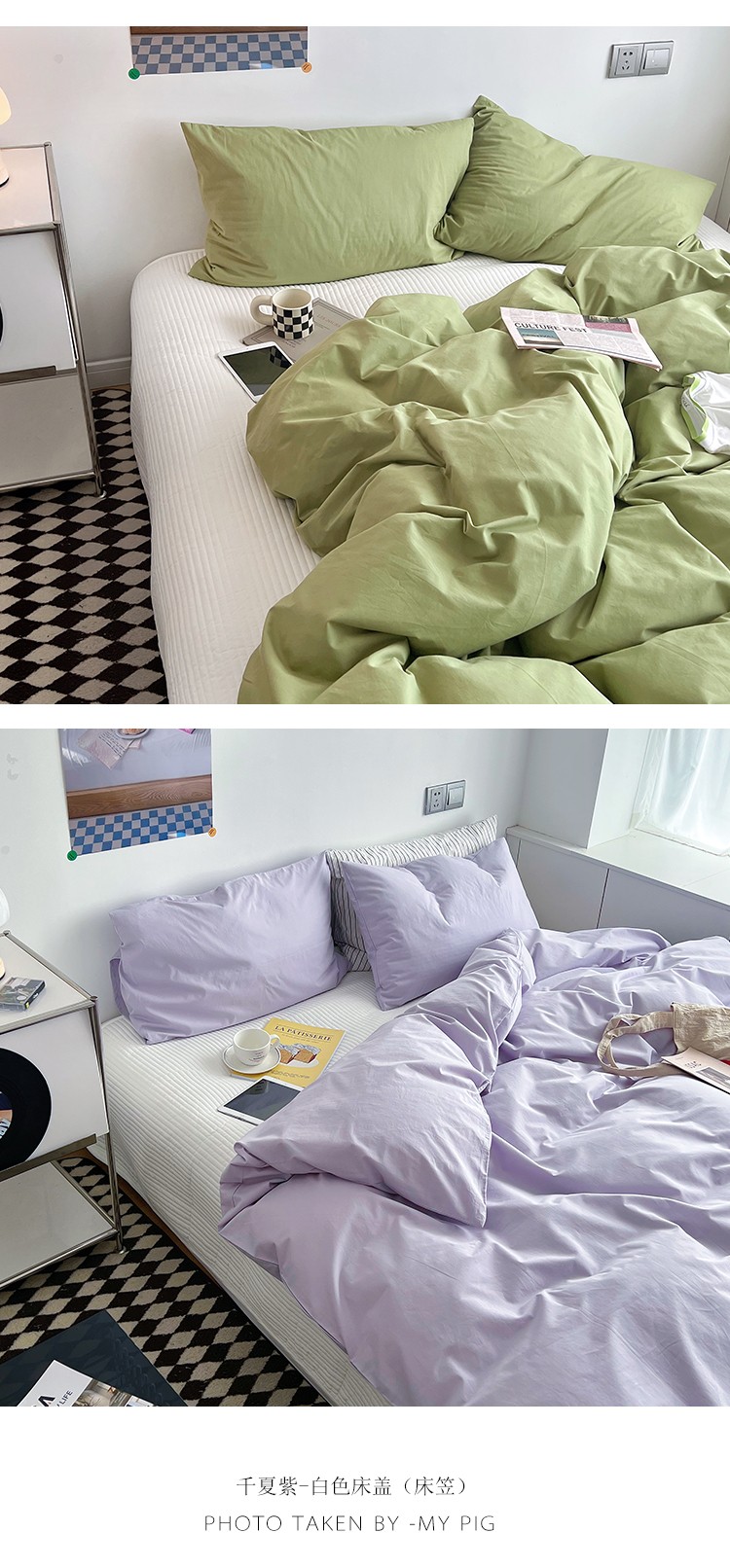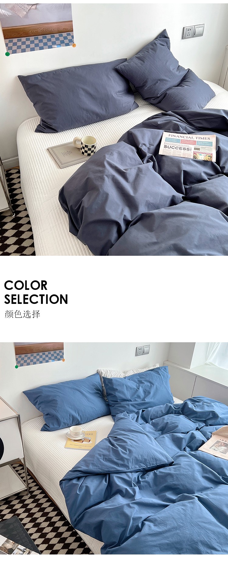 北欧风ins纯棉水洗棉床四件套全棉简约被套床单上三件套床笠,白色+藏青,藏青+浅蓝,鹅黄+螺旋藻绿,鹅黄+牛油果,螺旋藻绿+鹅黄,千夏紫+水貂灰,千夏紫+薇薇紫,薇薇紫+浅灰,浅蓝+鹅黄,浅蓝+白色,浅蓝+藏青