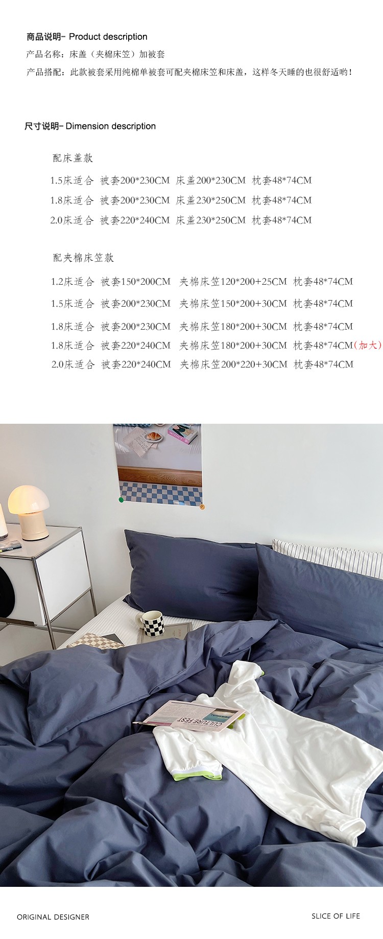 1.8m被套加大夹棉床笠款四件套
