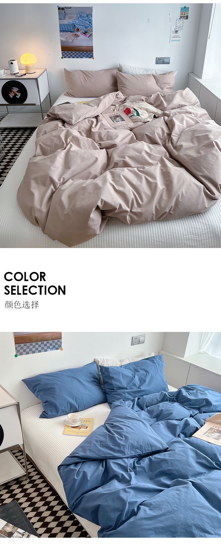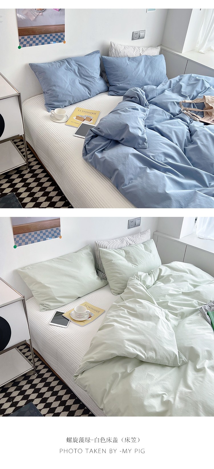 双拼全棉水洗棉纯棉四件套ins简约北欧纯色床笠款套件,双拼白+浅蓝,双拼白+薇薇紫,双拼海蓝+浅蓝,双拼琥珀+鹅黄,双拼焦糖+奶茶,双拼螺旋藻绿+鹅黄,双拼奶茶+鹅黄,双拼牛油果+鹅黄,双拼浅蓝+鹅黄,双拼树莓红+杏仁白,双拼水绿+螺旋藻绿,双拼豌豆青+杏仁白,双拼杏仁白+螺旋藻绿,薇薇紫+杏仁白,浅灰+杏仁白,双拼藏青+浅灰,双拼花青灰+浅灰,双拼霁色+浅灰