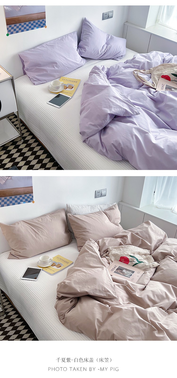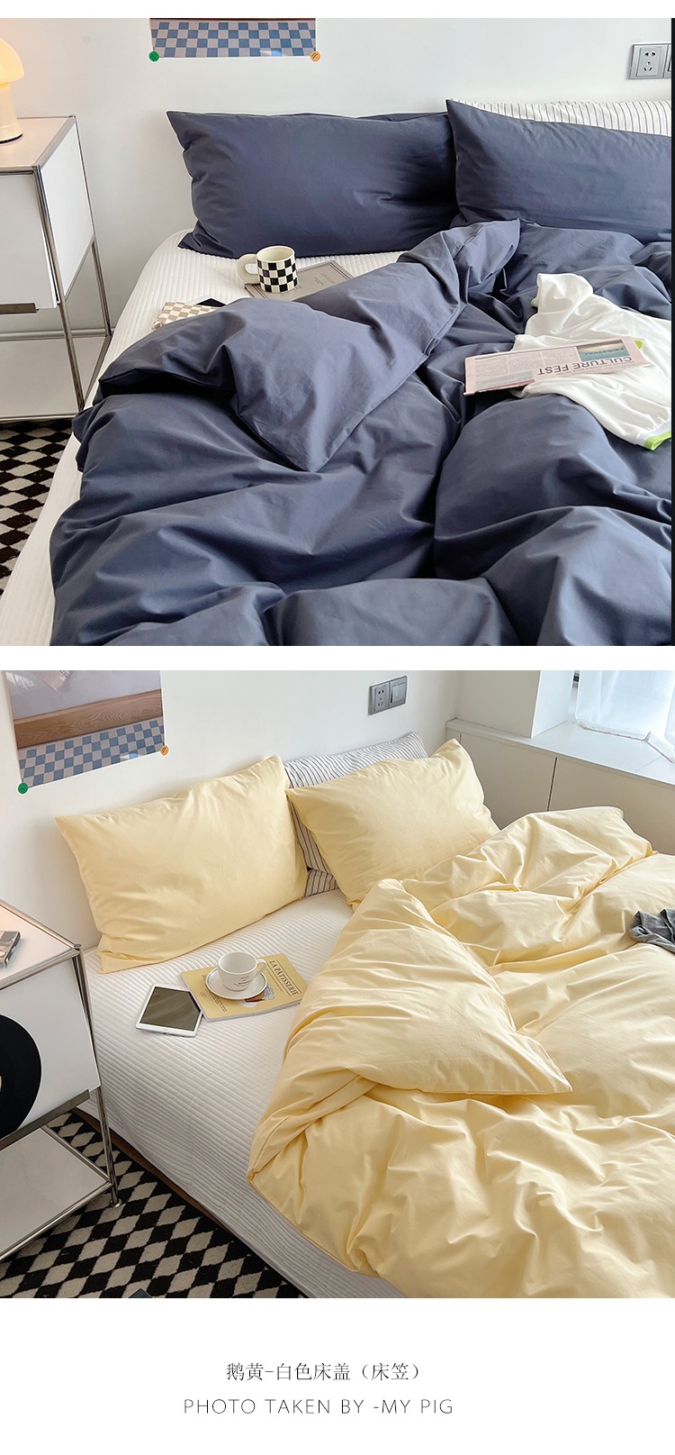 北欧风ins纯棉水洗棉床四件套全棉简约被套床单上三件套床笠,白色+藏青,藏青+浅蓝,鹅黄+螺旋藻绿,鹅黄+牛油果,螺旋藻绿+鹅黄,千夏紫+水貂灰,千夏紫+薇薇紫,薇薇紫+浅灰,浅蓝+鹅黄,浅蓝+白色,浅蓝+藏青