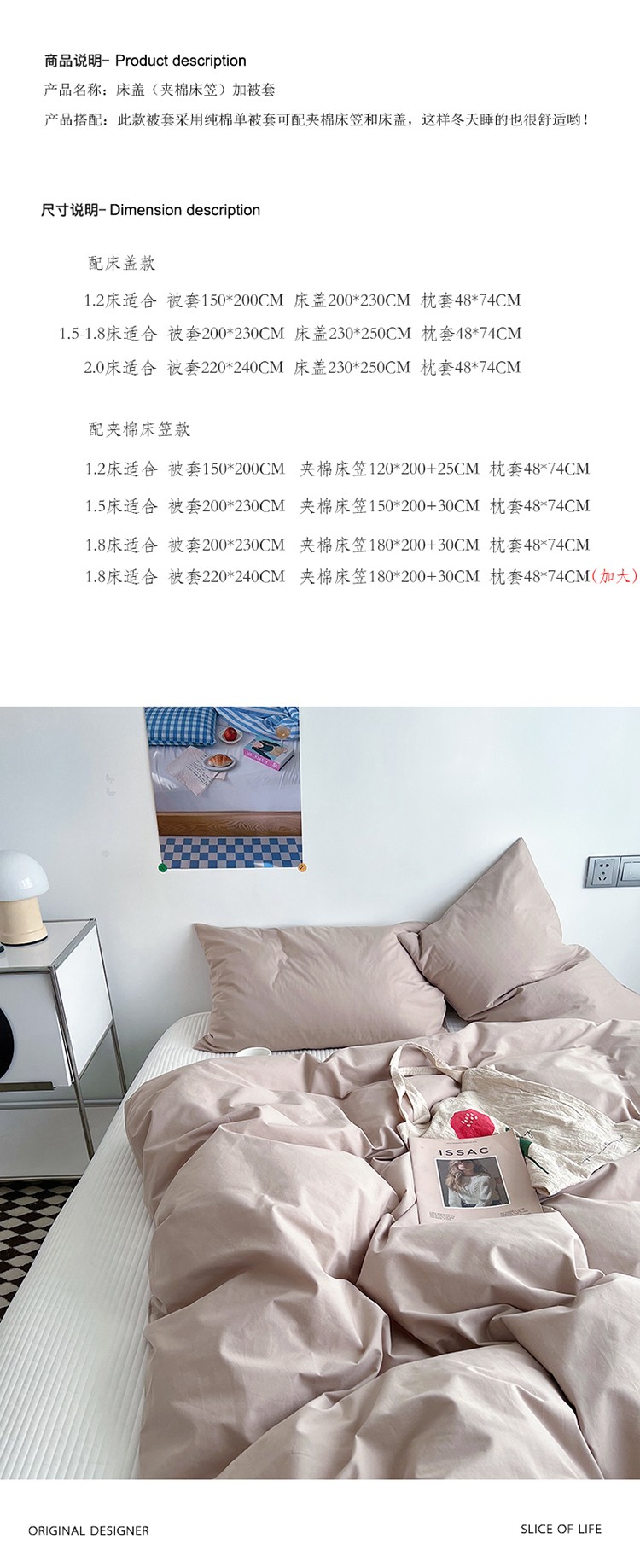 商品名称:猪先生 2022新款极简风纯棉床盖床笠四件套 纸棕+极简白