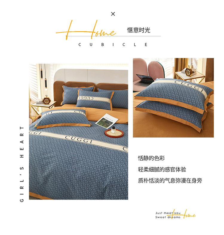 (总)雲归梦 2021新款全棉生态磨毛刺绣四件套,慕思-橙色,慕思-粉紫,慕思-灰,慕思-米黄,慕思-青绿,慕思-天蓝