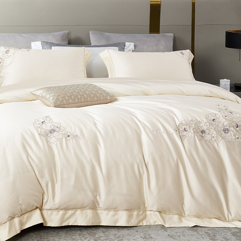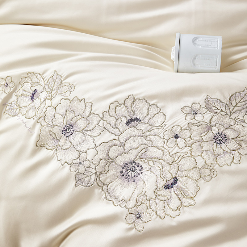 爱情故事 2025新款居家140支轻奢贡缎长绒棉刺绣四件套 初夏(米白)