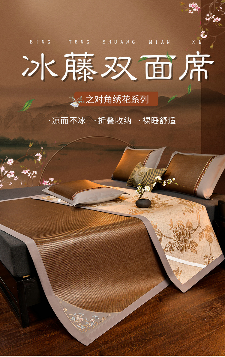 当前位置: 91家纺网 > 商品网购 > 床上用品 > 凉席 > 藤席 > 小牛席业 2023新款对角绣花冰藤双面席 对角绣花-冰藤双面席黑咖