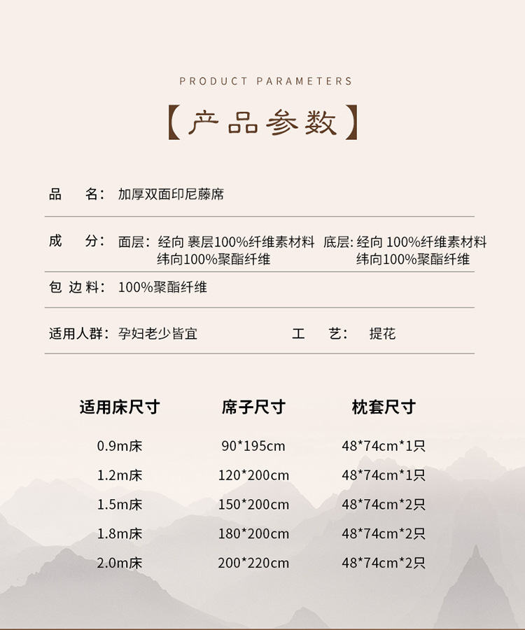 商品名称:(总)小牛席业 2023新款加厚双面印尼藤席