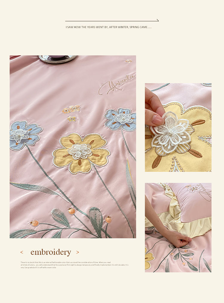 (总)AB家纺2023新款韩版水洗棉毛巾绣四件套-郁金香系列,郁金香白-玉,郁金香白-紫,郁金香粉玉,郁金香粉-紫,郁金香裸紫