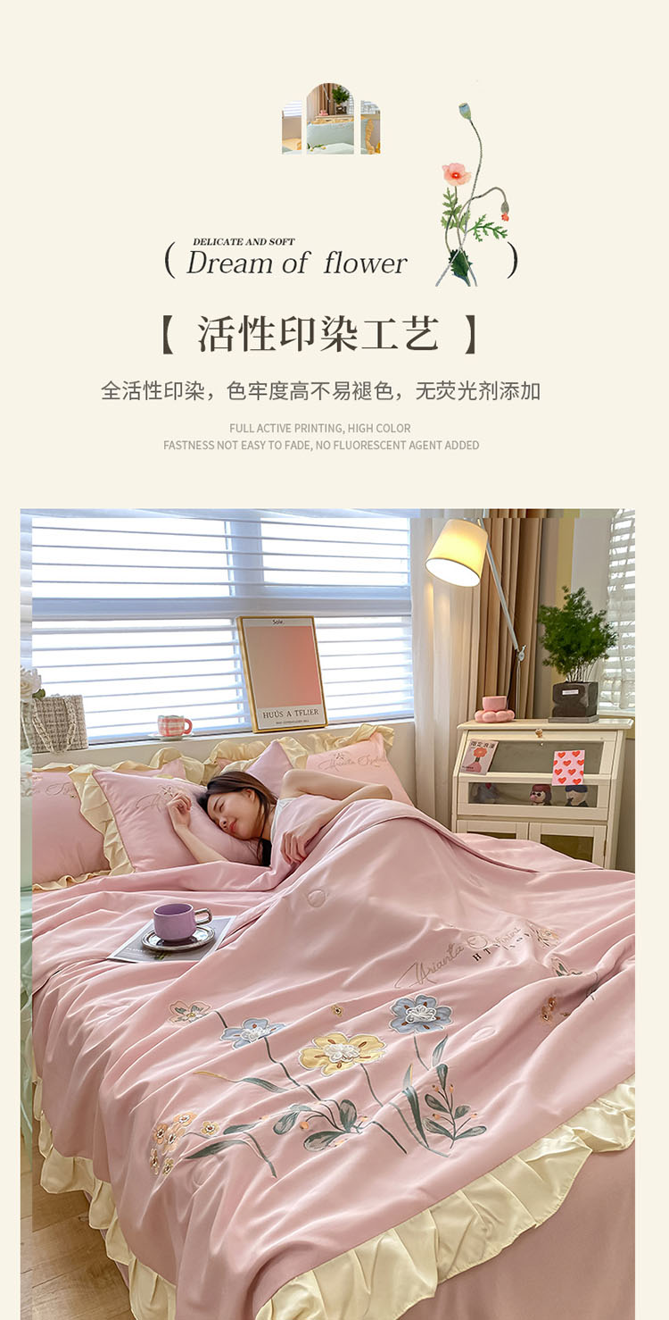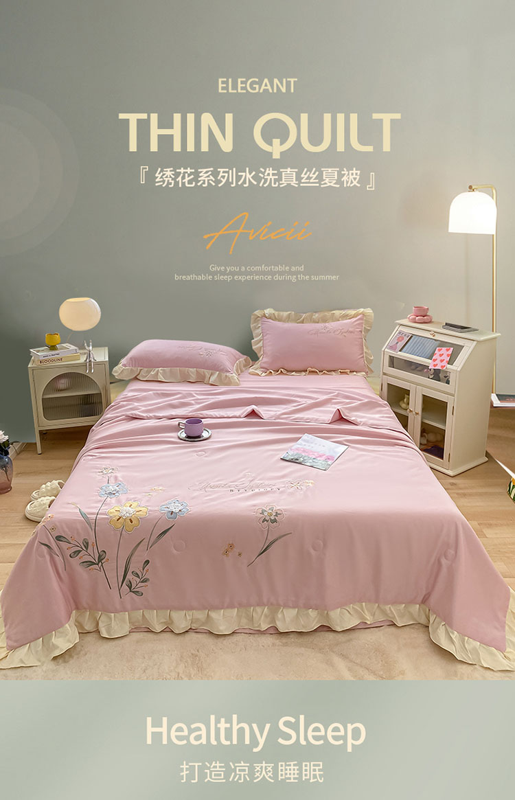 AB家纺 2023新品水洗真丝夏被 伊甸园浅豆沙