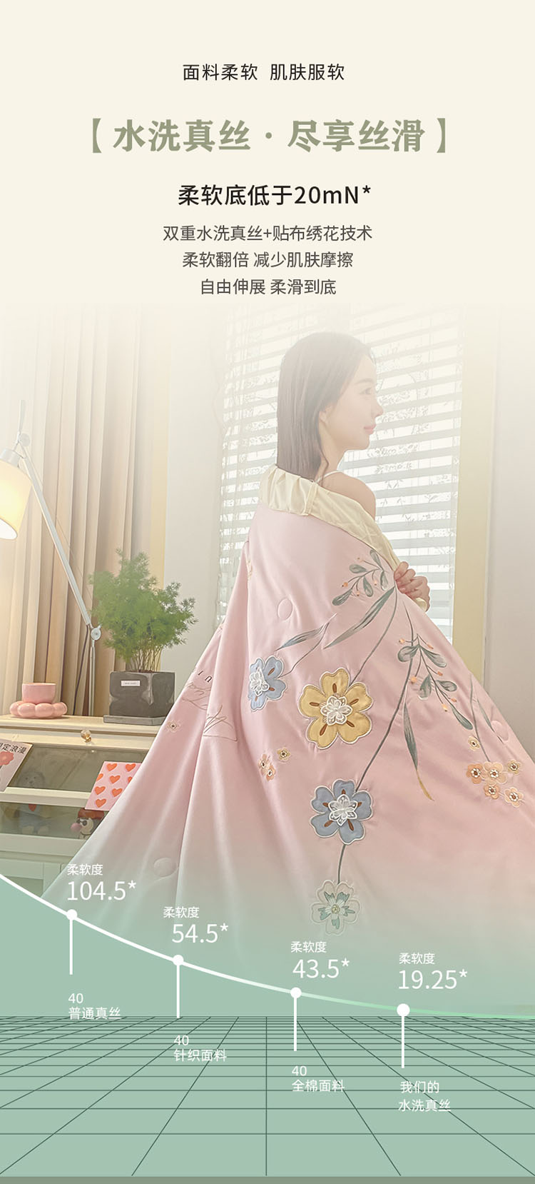 商品名称:AB家纺 2023新品水洗真丝夏被 伊甸园浅豆沙