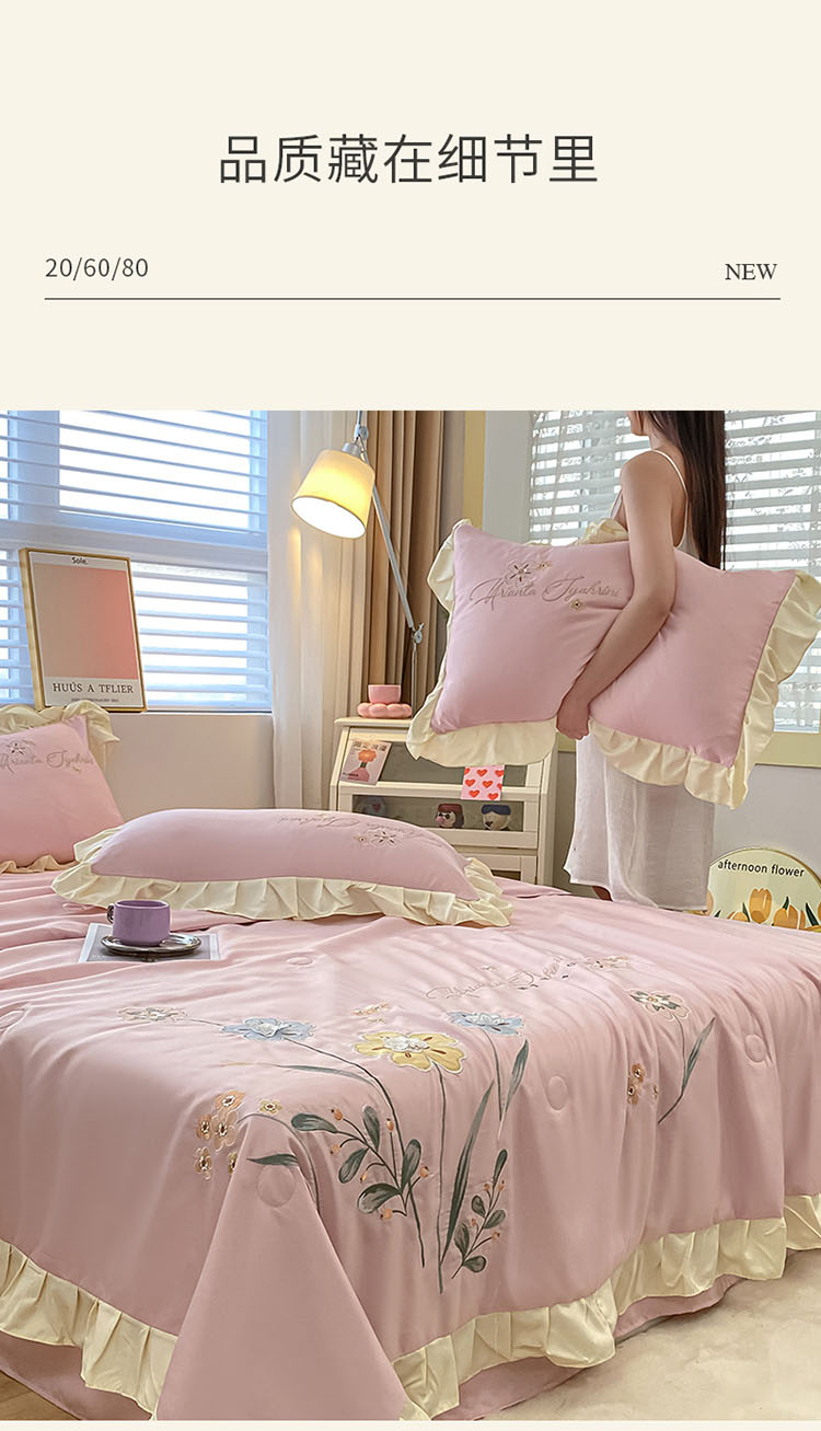 (总)ab家纺 2023新款满绣水洗棉四件套,本白,鹅黄,浅粉,浅灰,浅蓝,浅紫,水兰