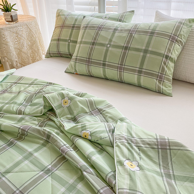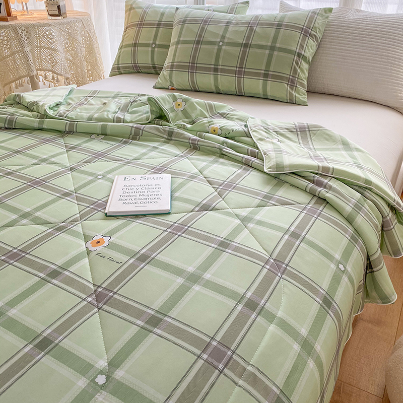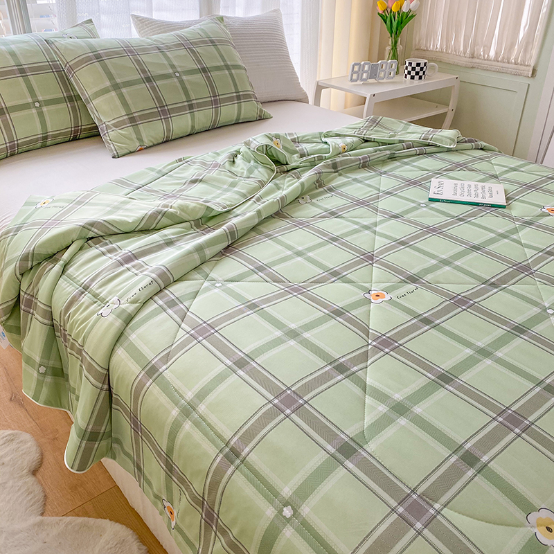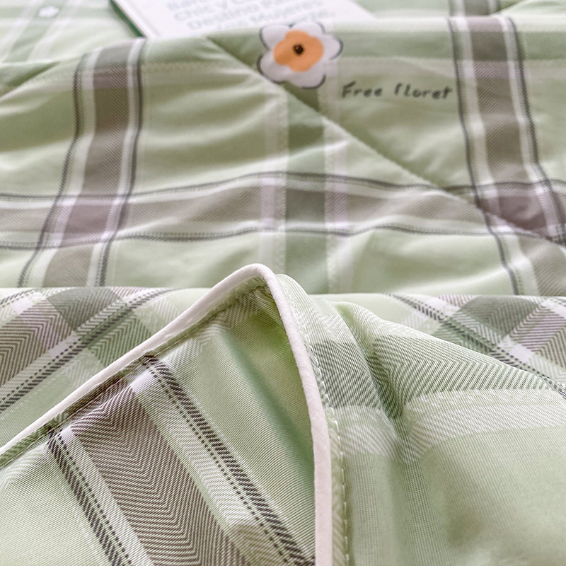 鹏程 2023新款A类凉感丝牛奶丝夏凉被柔感针织棉夏被 经典绿格