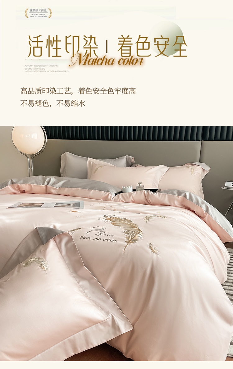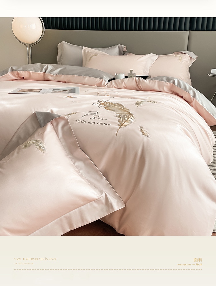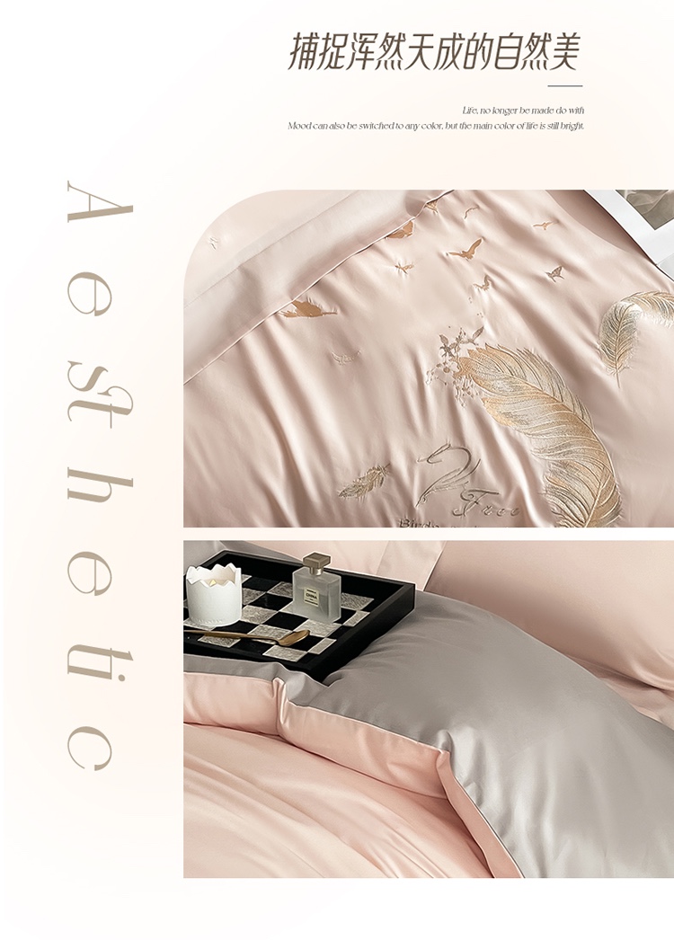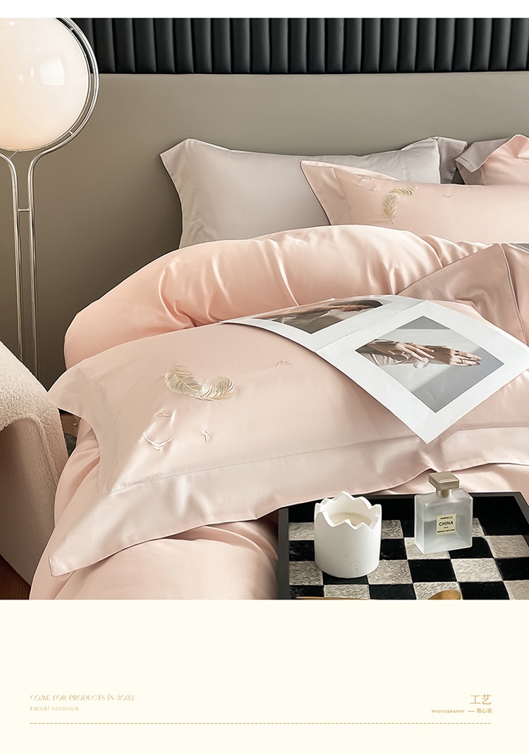 商品名称:蓝米卡夫 2024全棉高级感长绒棉刺绣兰羽系列-单被套 兰羽-粉芋山灰