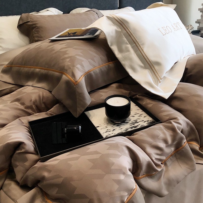 涞澳家纺 2023新款天丝提花四件套 凯文-咖