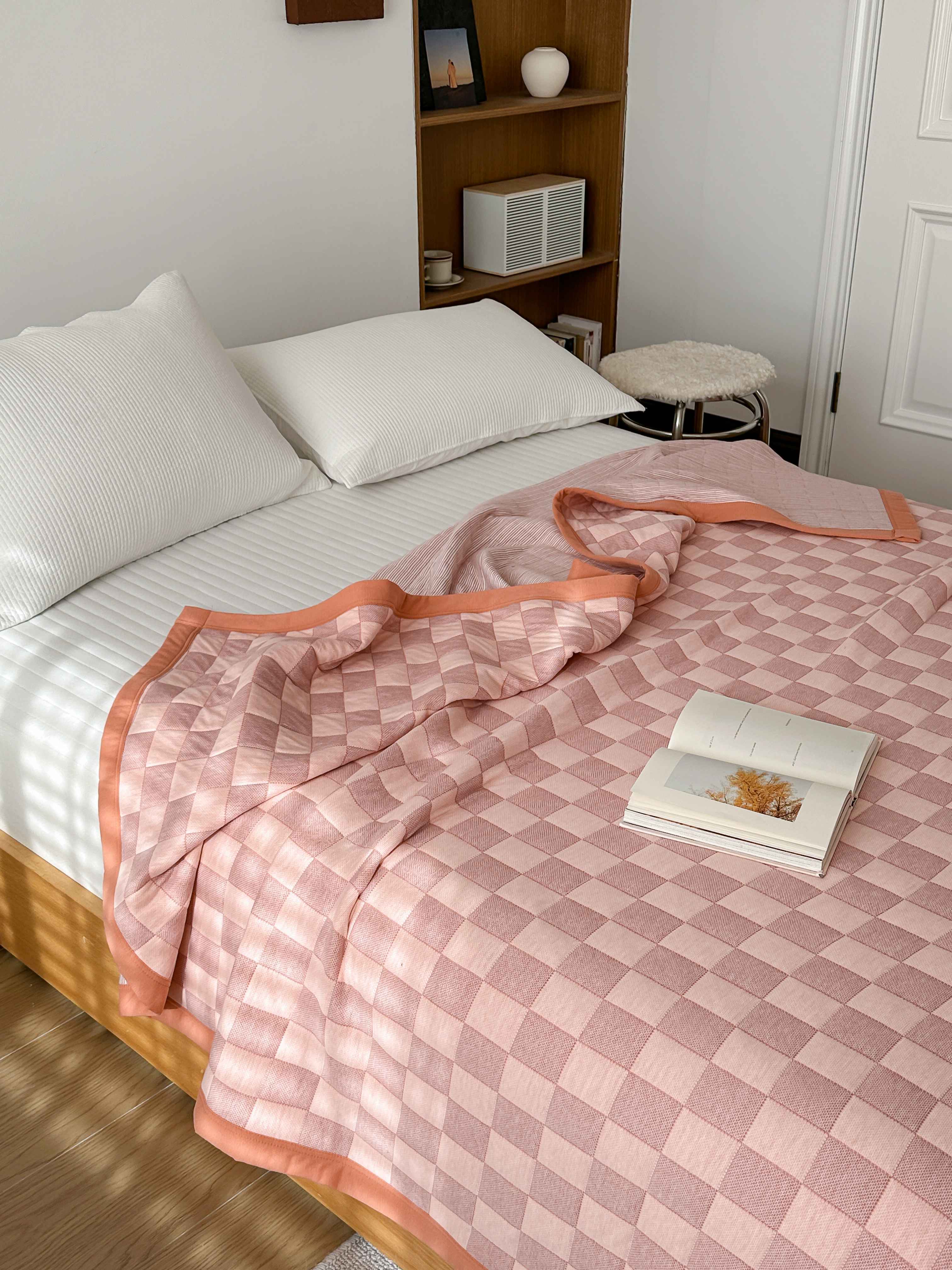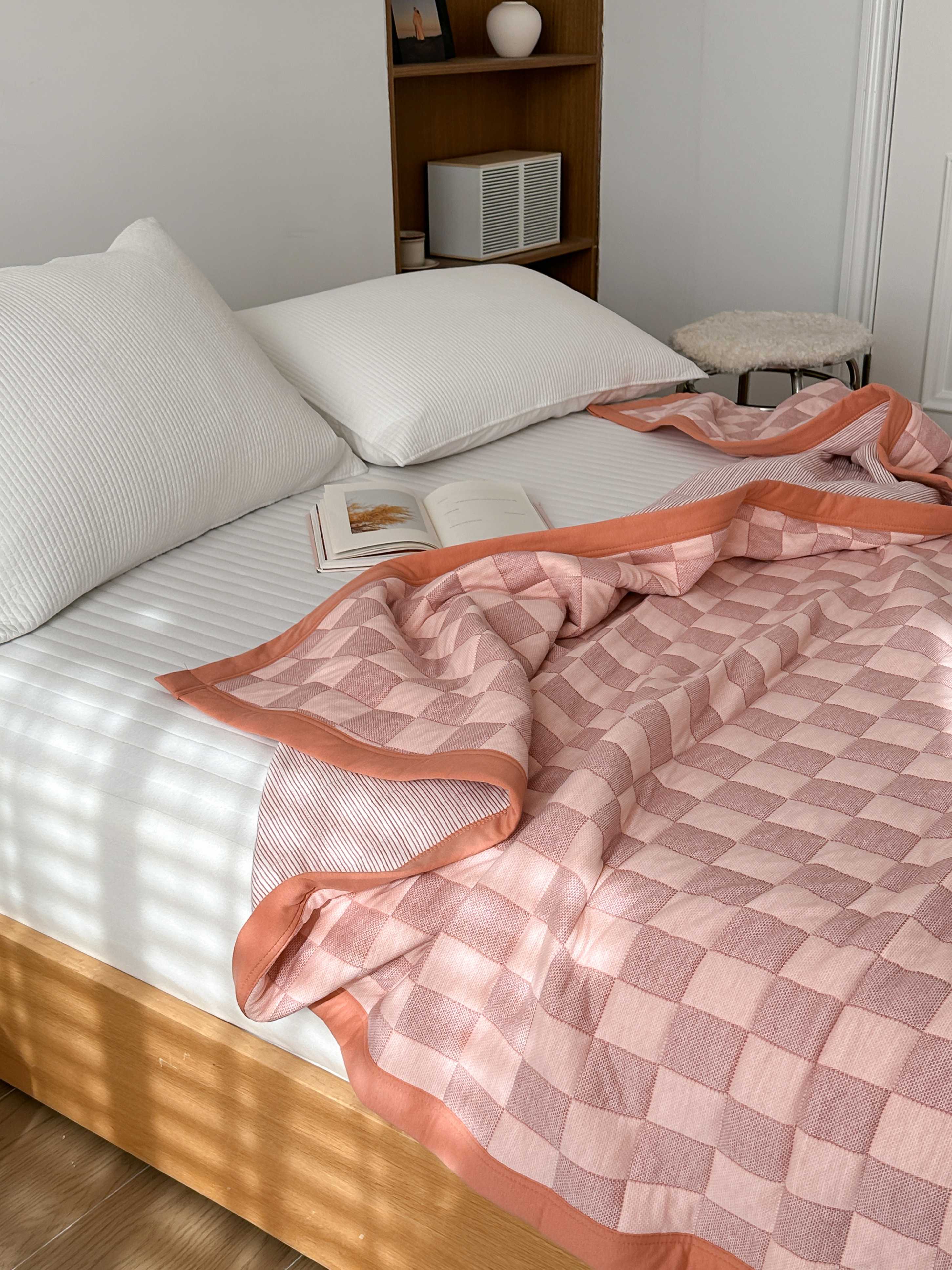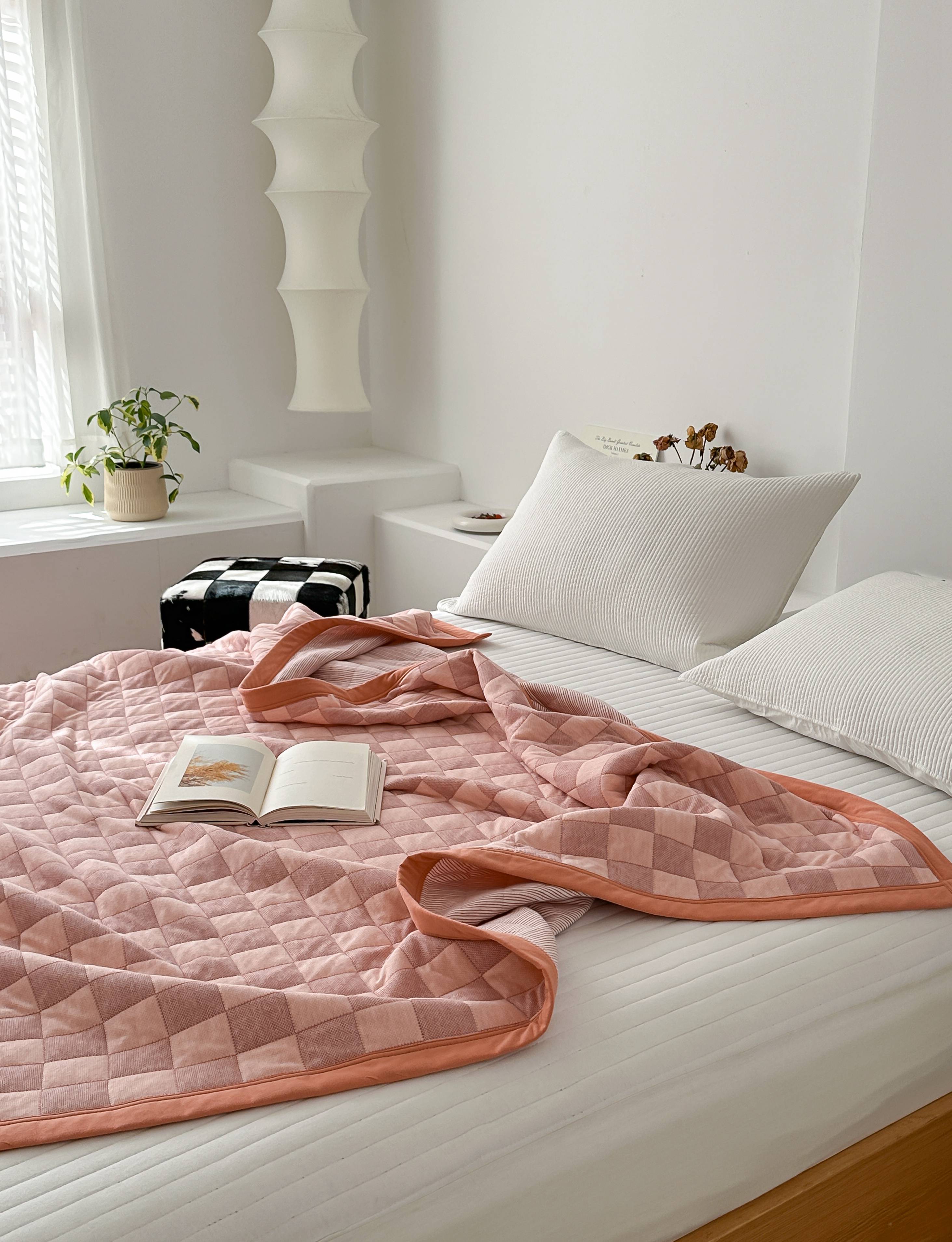 (总)爱丽丝 2023新款全棉针织棉棋盘格夏被,棋盘格(红),棋盘格(黄),棋盘格(灰),棋盘格(绿)