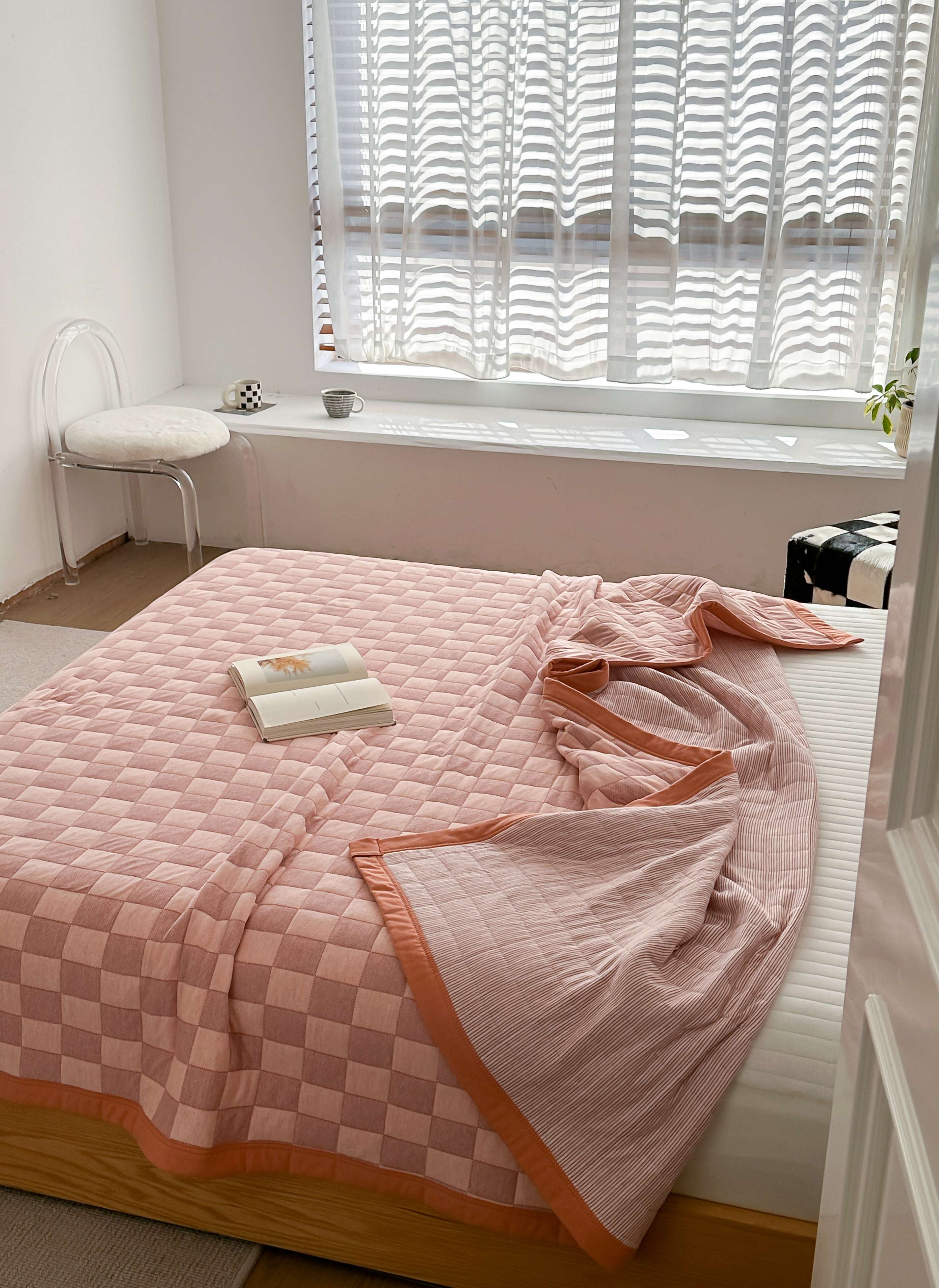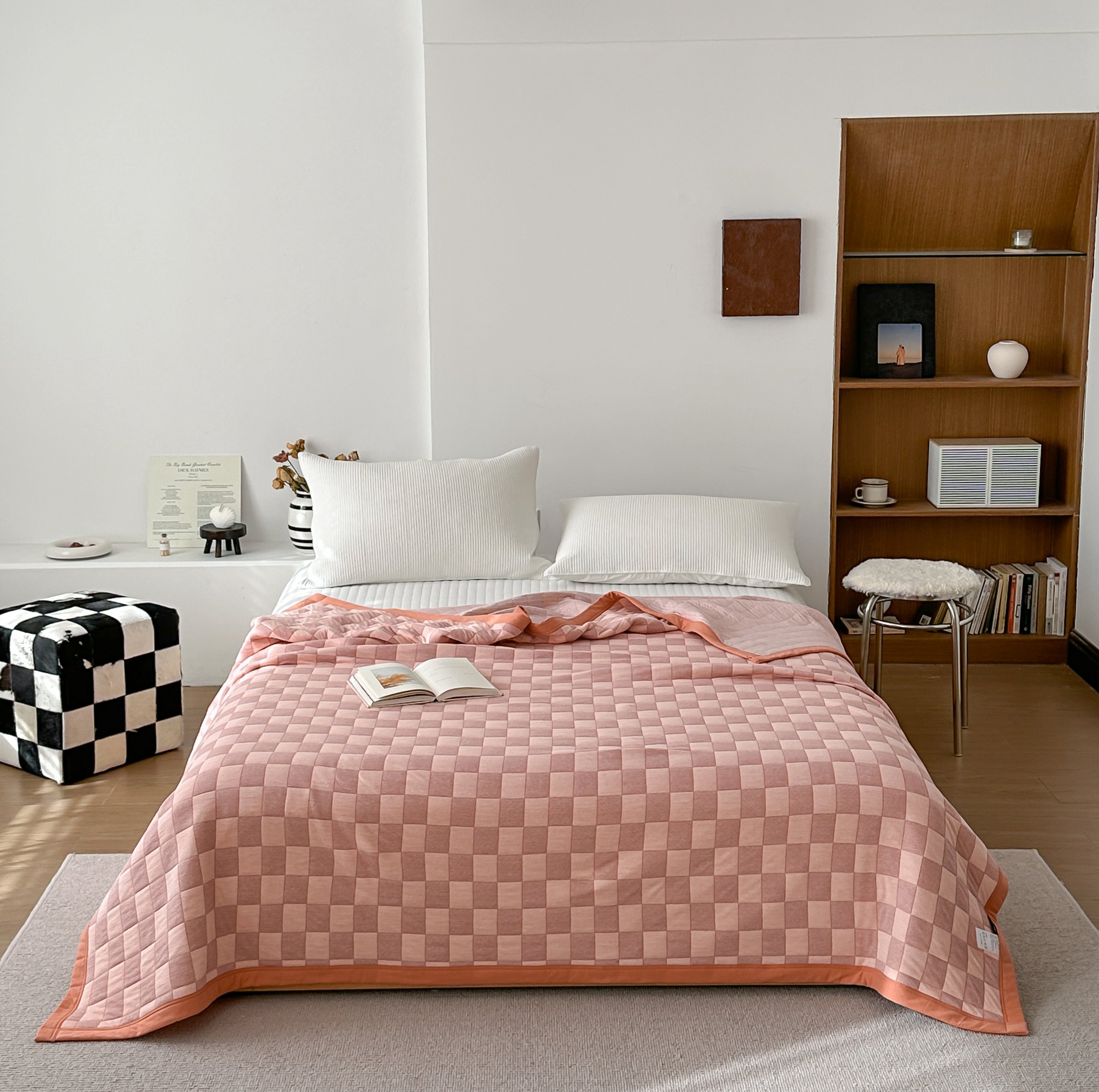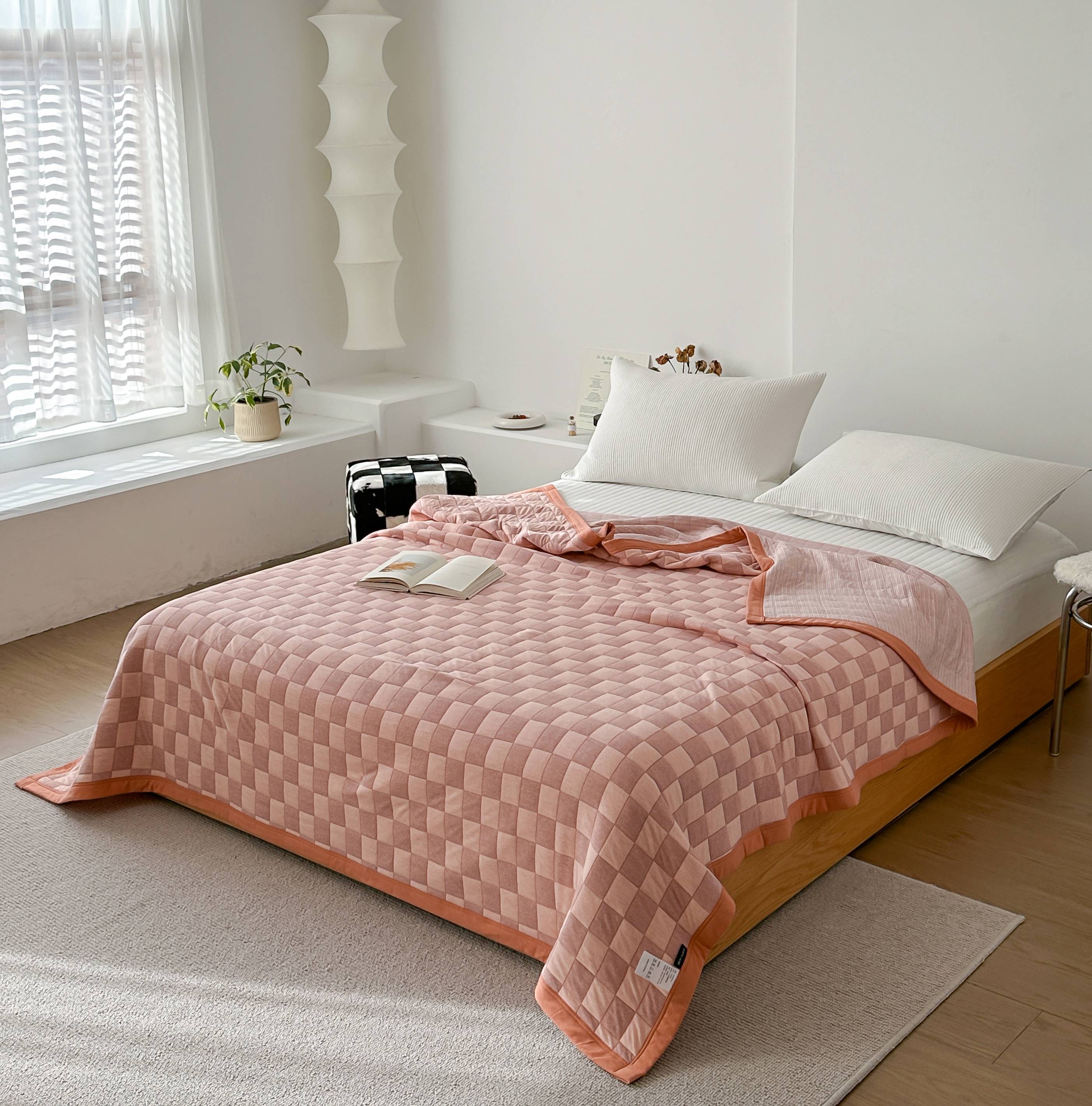 (总)爱丽丝 2023新款全棉针织棉棋盘格夏被,棋盘格(红),棋盘格(黄),棋盘格(灰),棋盘格(绿)