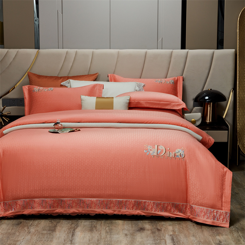 星尚2023新款100支长绒棉提花绣花四件套-迪奥 香妃橘