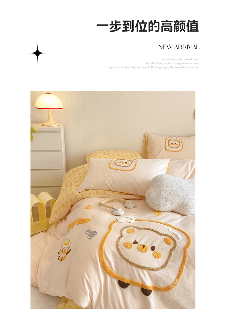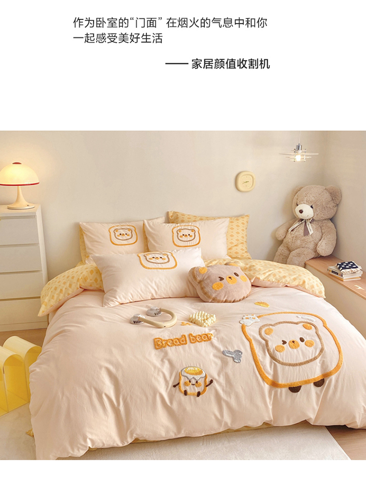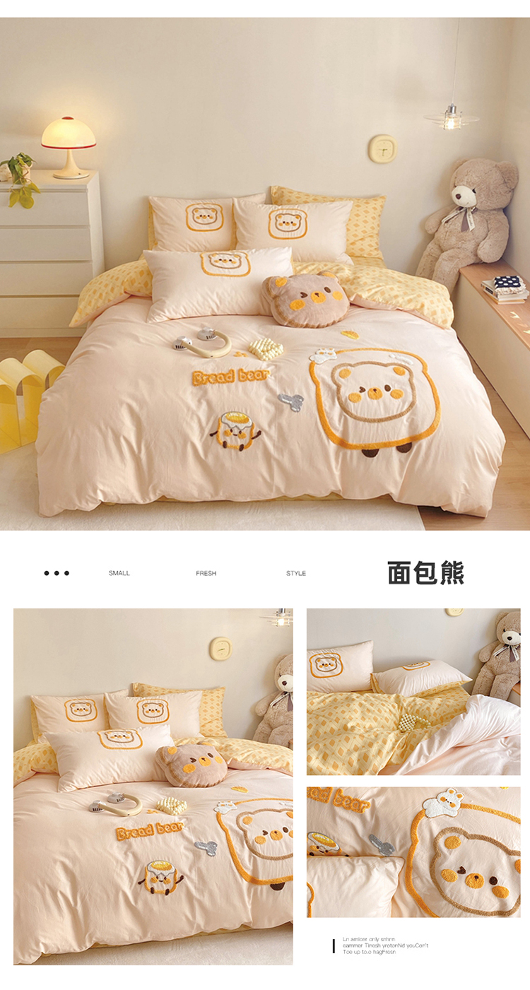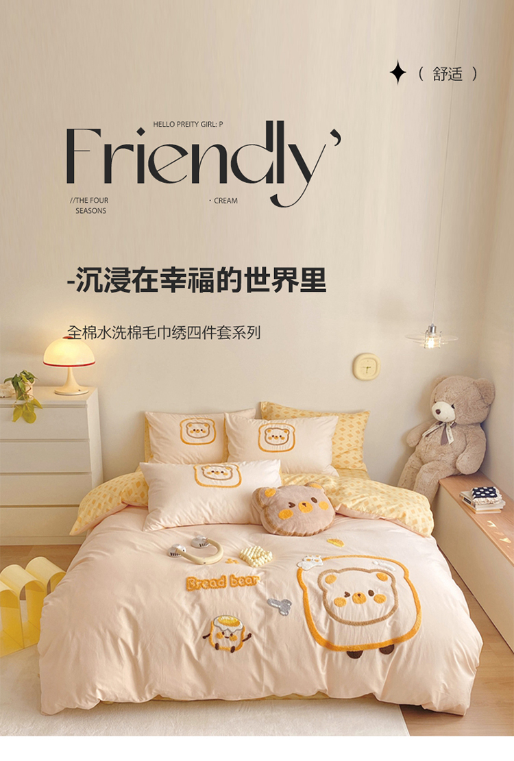商品名称:眠屿2023新款全棉水洗棉毛巾绣四件套 面包熊