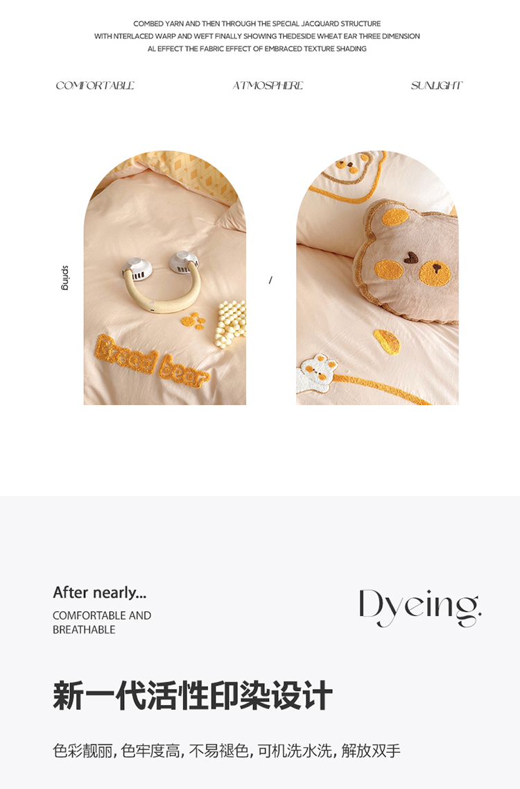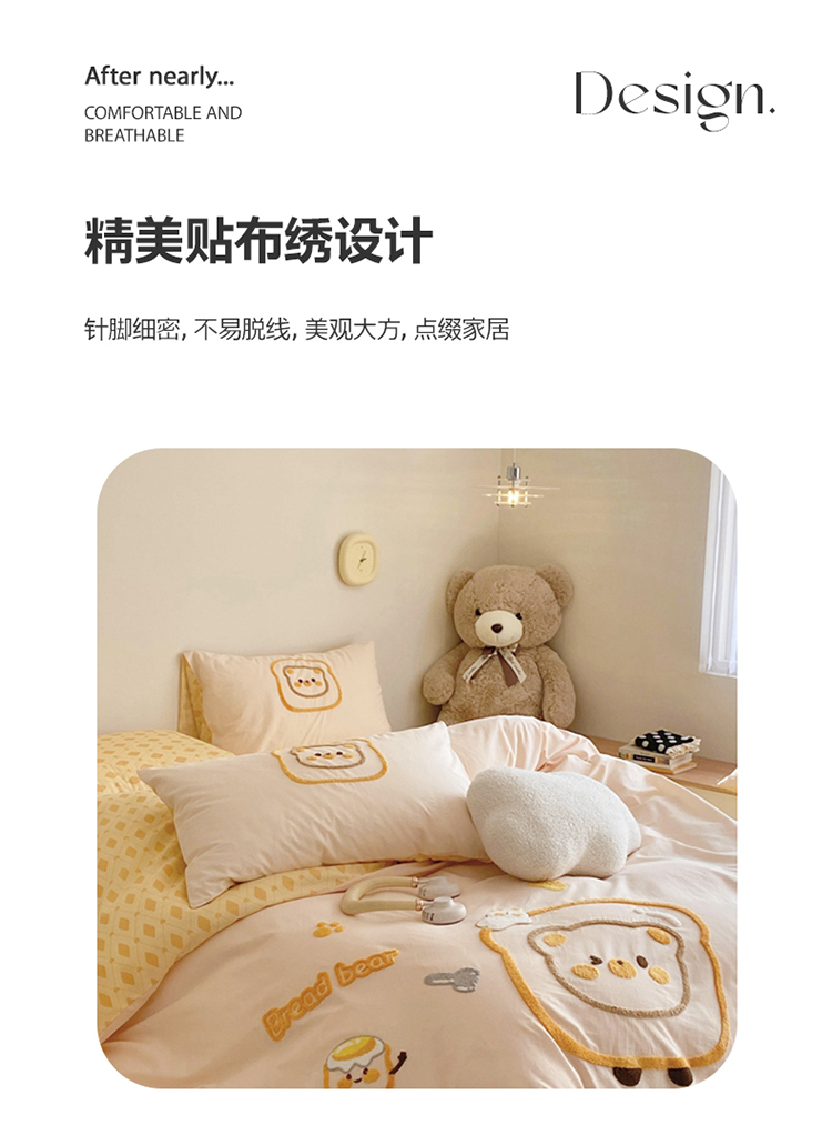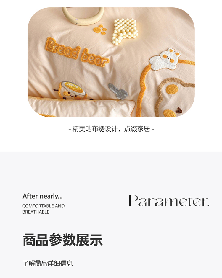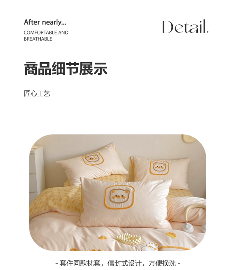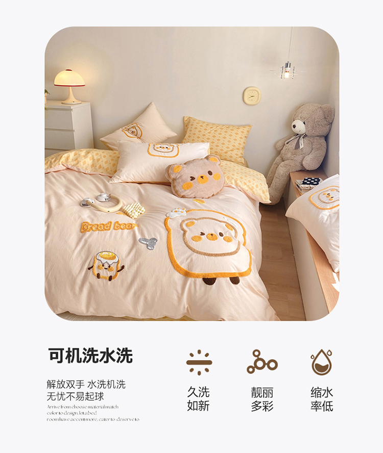 商品名称:眠屿2023新款全棉水洗棉毛巾绣四件套 面包熊