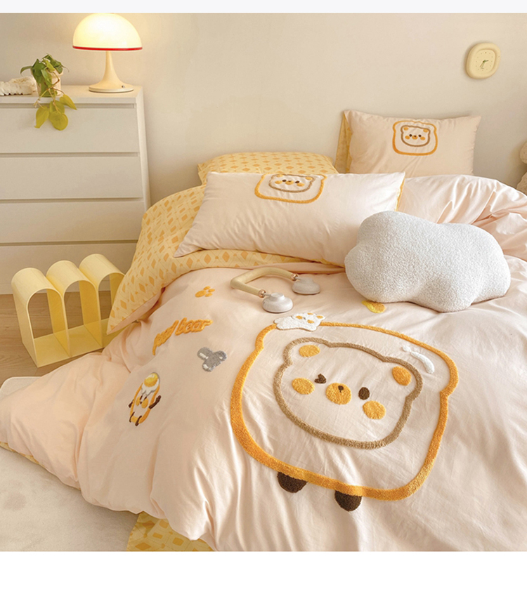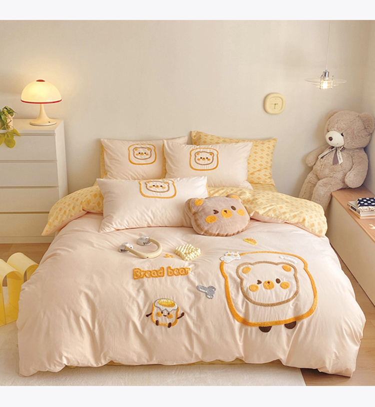 眠屿2023新款全棉水洗棉毛巾绣四件套 面包熊