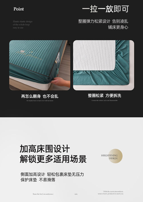 (总)好眠好梦家纺 2025新款全棉50S抗菌防螨夹棉防水床笠-无限之光系列,白色,粉色,卡其,深灰,天蓝,烟灰