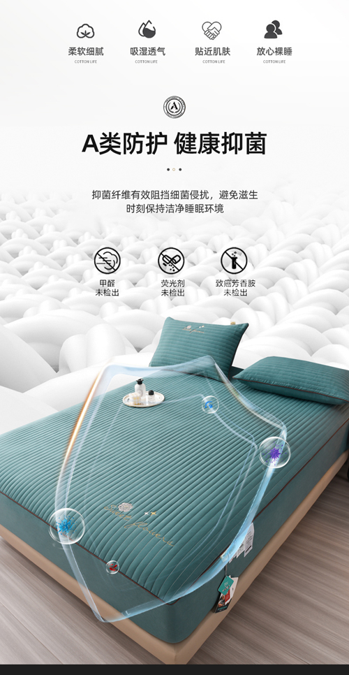 (总)好眠好梦家纺 2025新款全棉50S夹棉抗菌防螨床笠-棉生活系列,白色,粉色,卡其,深灰,天蓝,烟灰