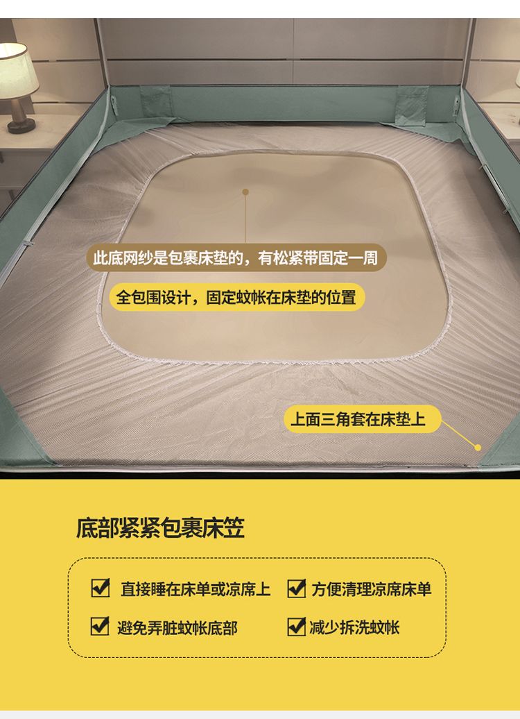 商品名称:宅部落2023年床笠款防摔坐立蚊帐 大熊猫-苹果绿