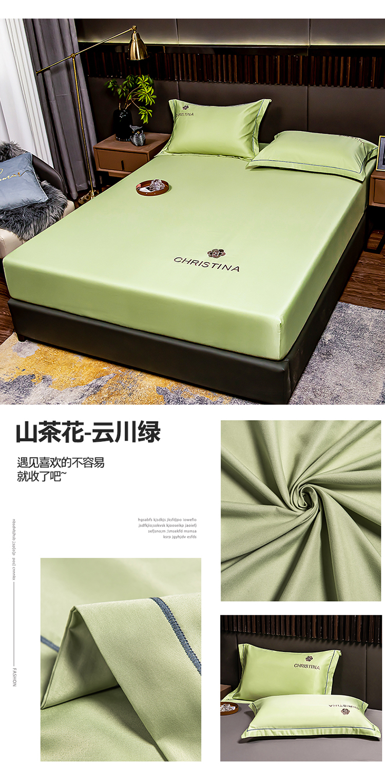 商品名称:丽美人 2023新款水洗真丝床笠款凉席山茶花系列 山茶花-云川绿