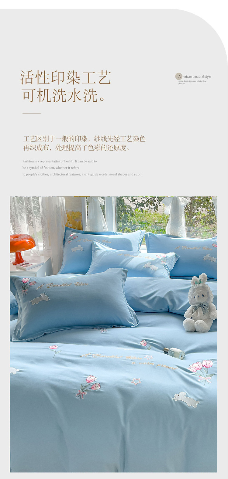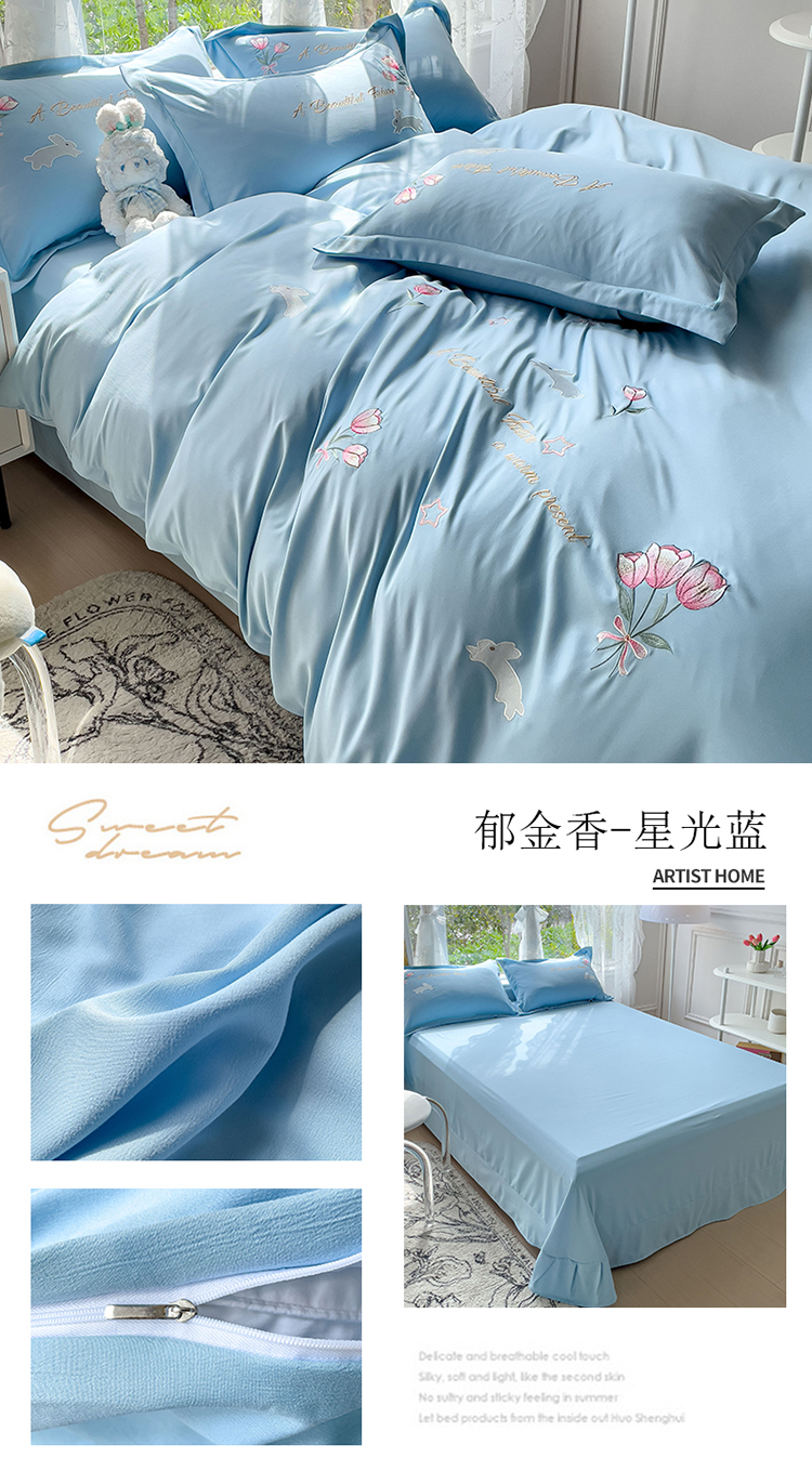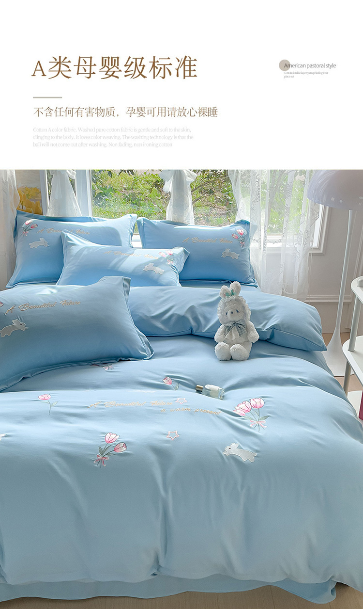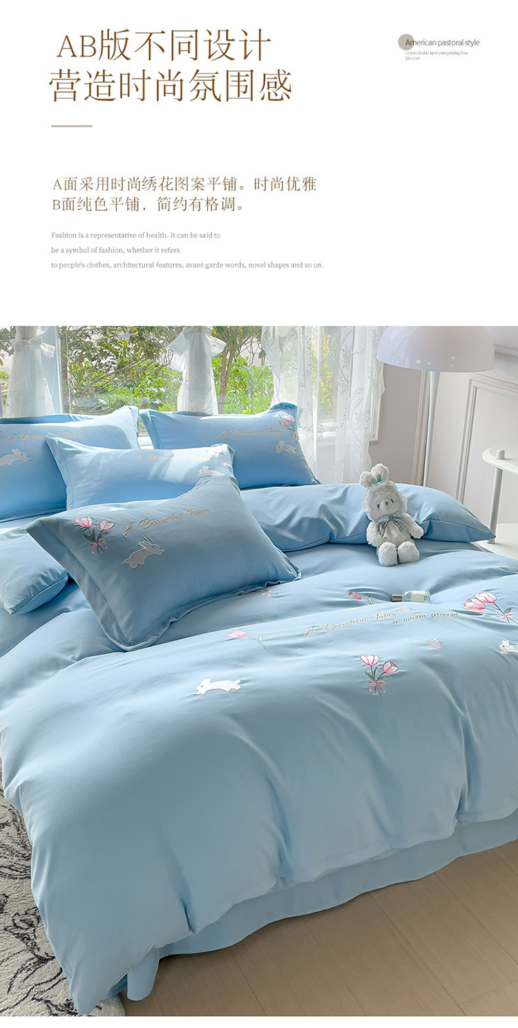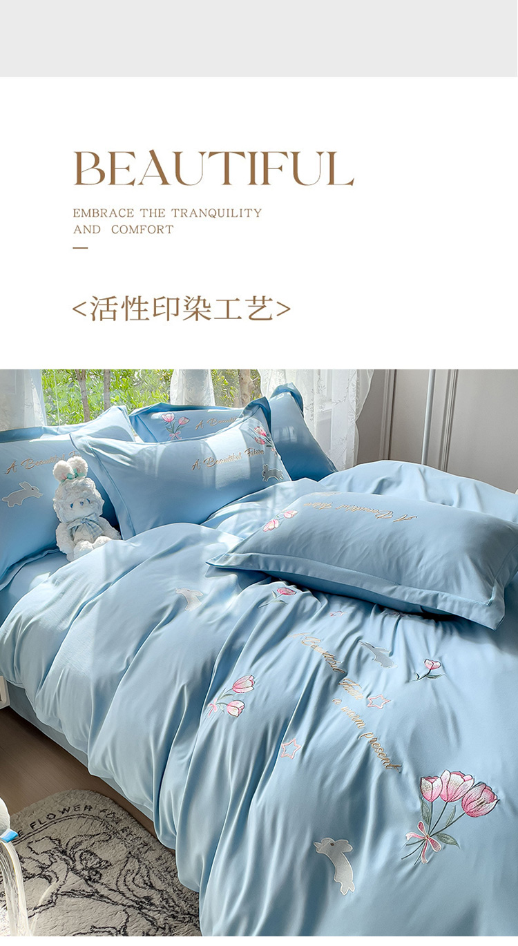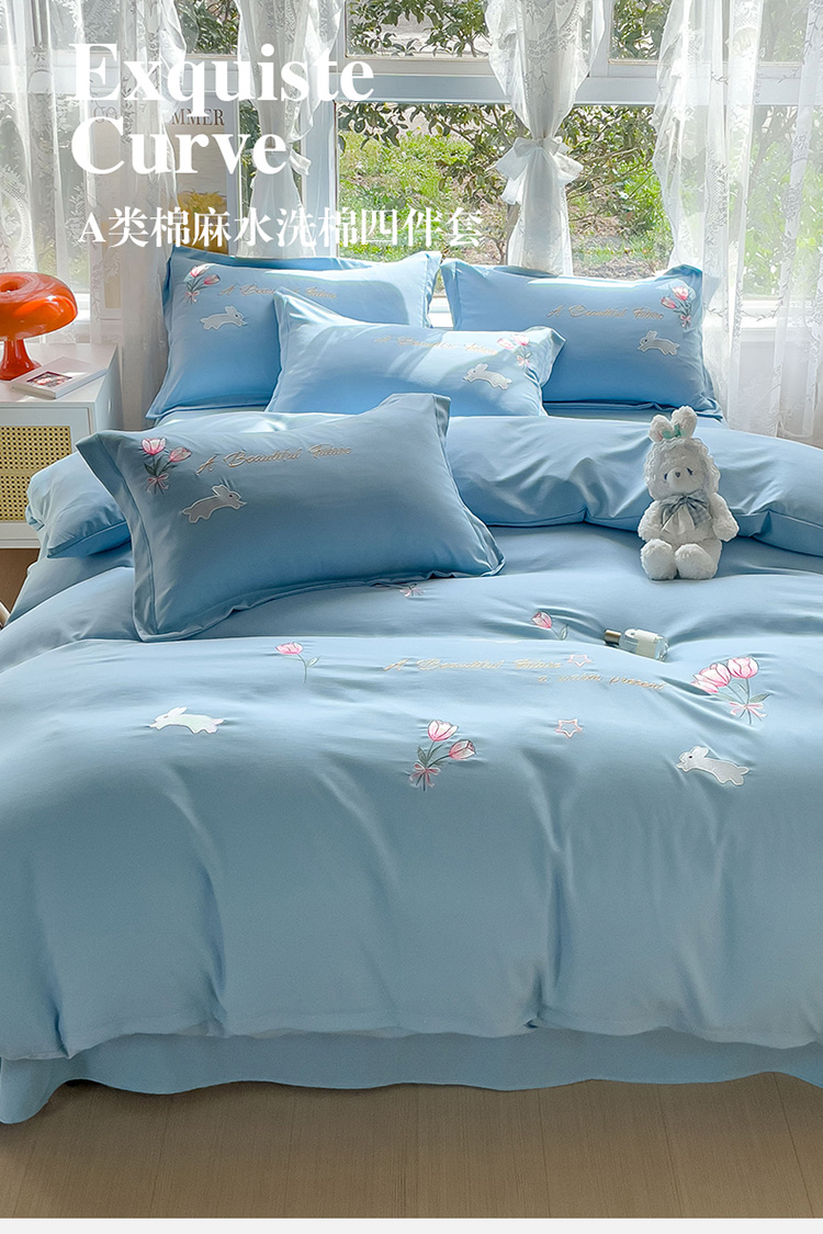 2023春夏新品A类双层纱水洗棉麻四件套-郁金香系列 郁金香-星光蓝