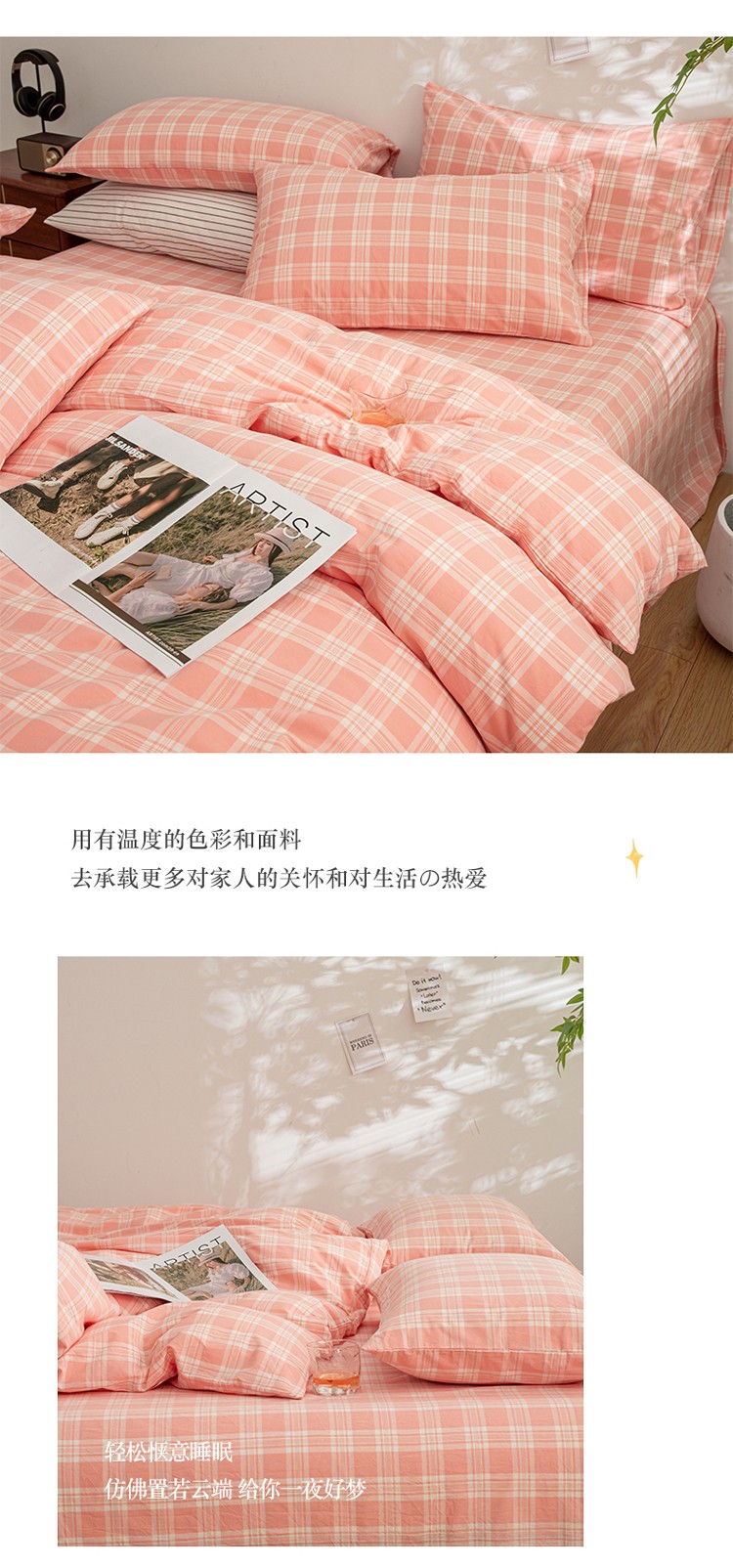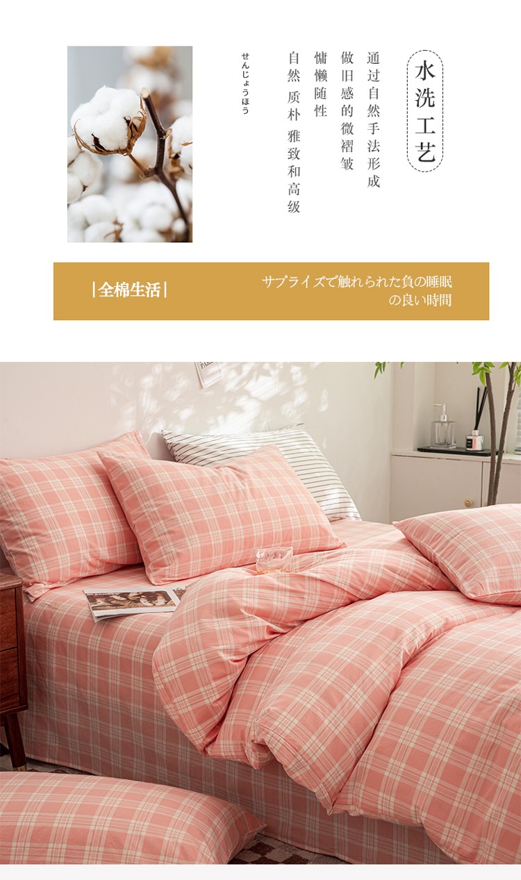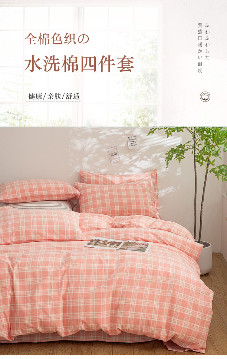 当前位置: 91家纺网 > 商品网购 > 床品套件 > 四件套 > 水洗棉四件套 > 柠萌家居 2023年新款无印风格A类全棉色织水洗棉四件套 卡洛-粉