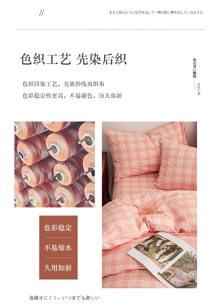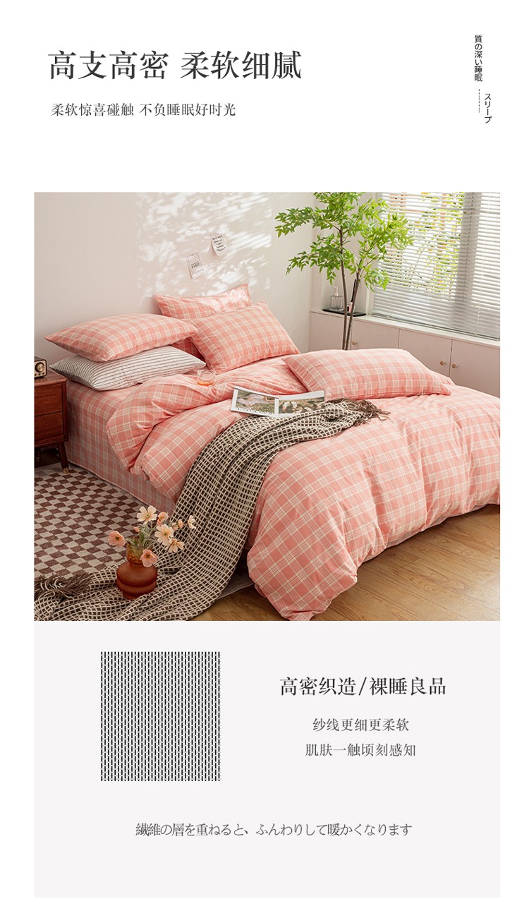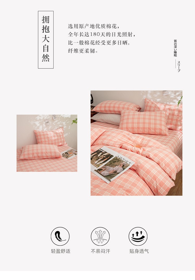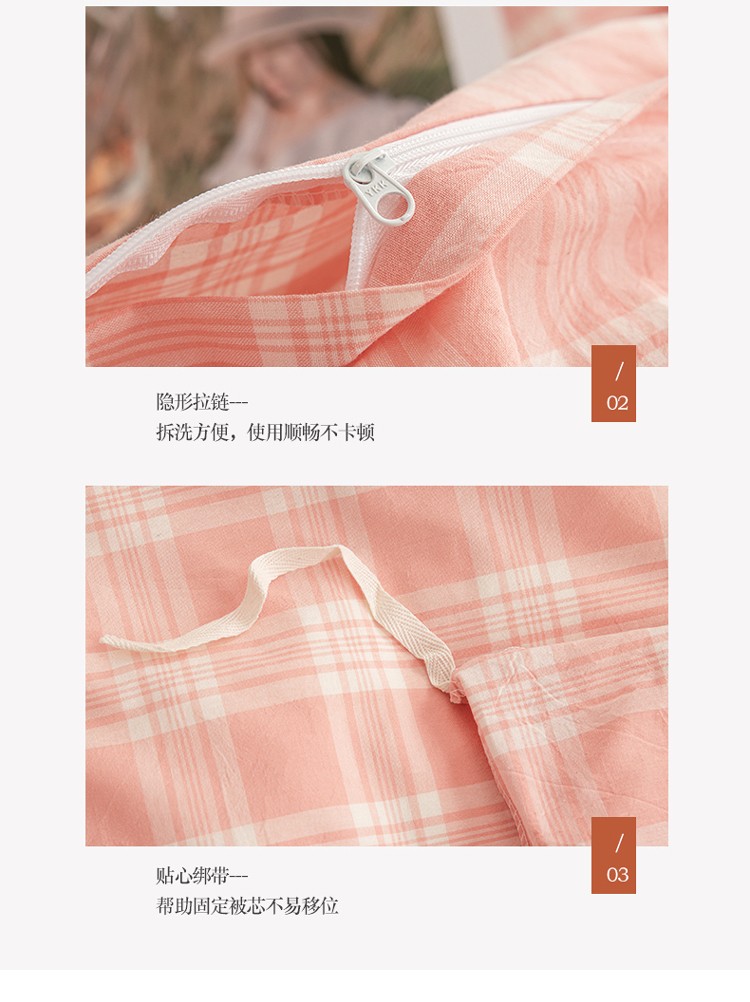 当前位置: 91家纺网 > 商品网购 > 床品套件 > 四件套 > 水洗棉四件套 > 柠萌家居 2023年新款无印风格A类全棉色织水洗棉四件套 卡洛-粉