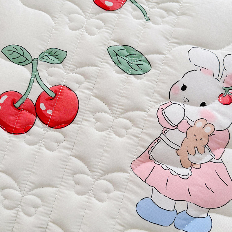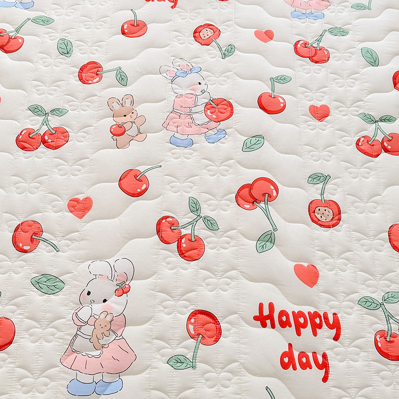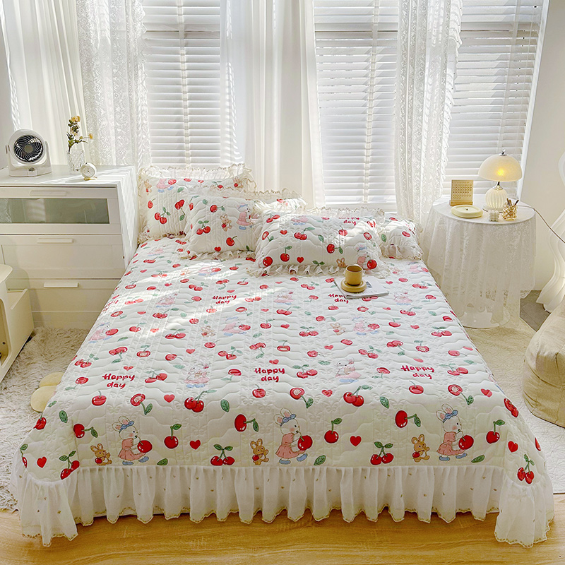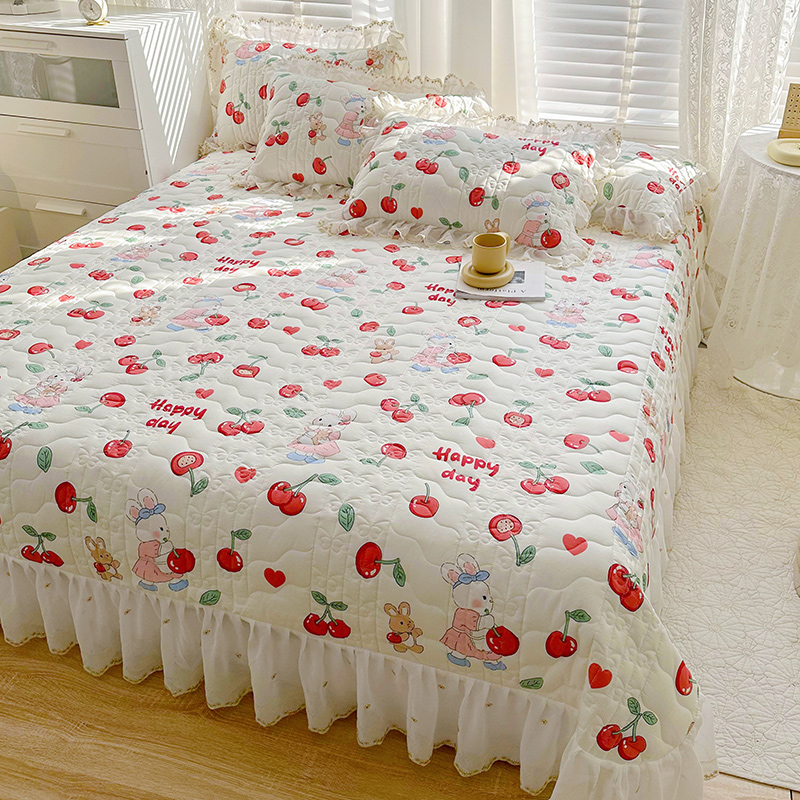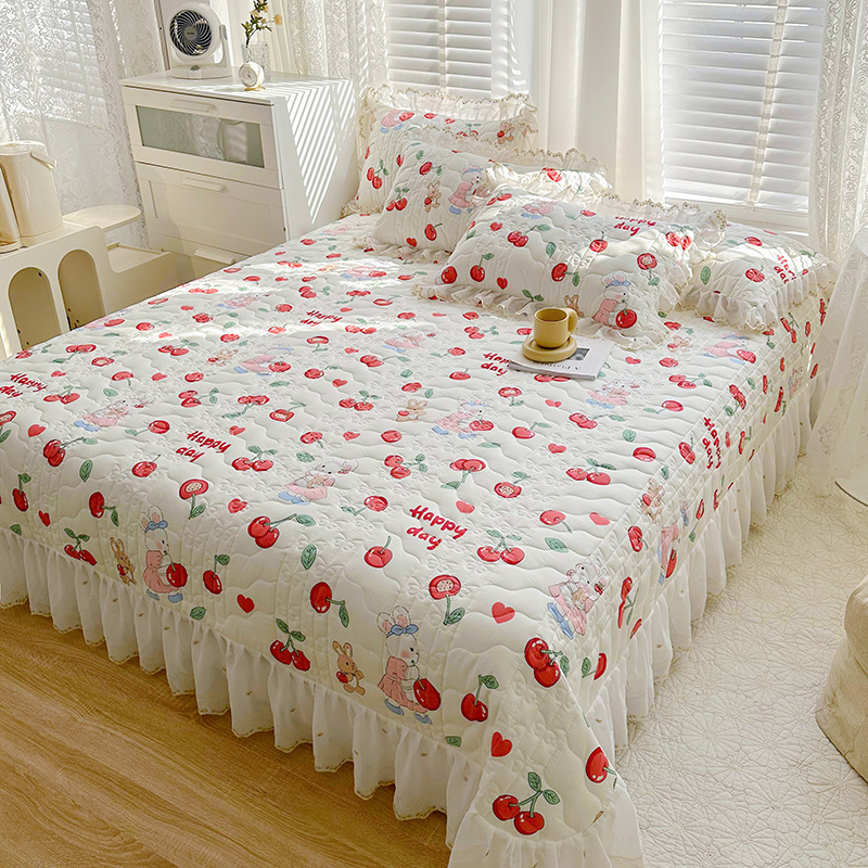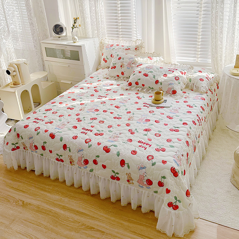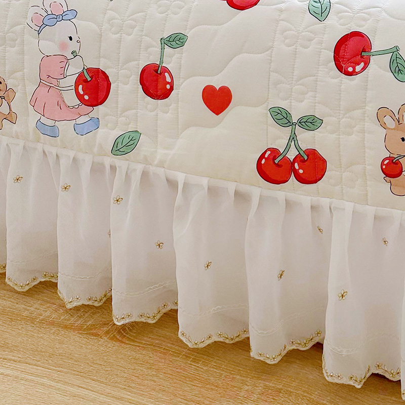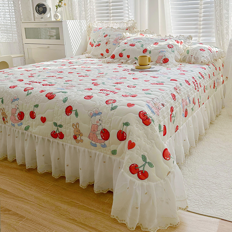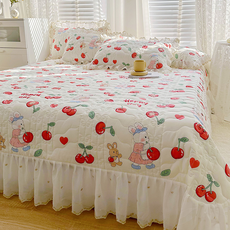 宜凡 2023新款全棉蕾丝刺绣床盖三件套 红果果兔