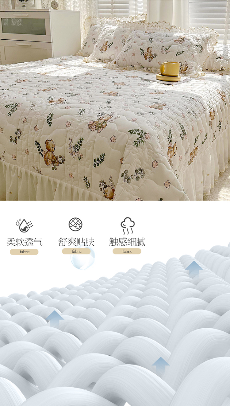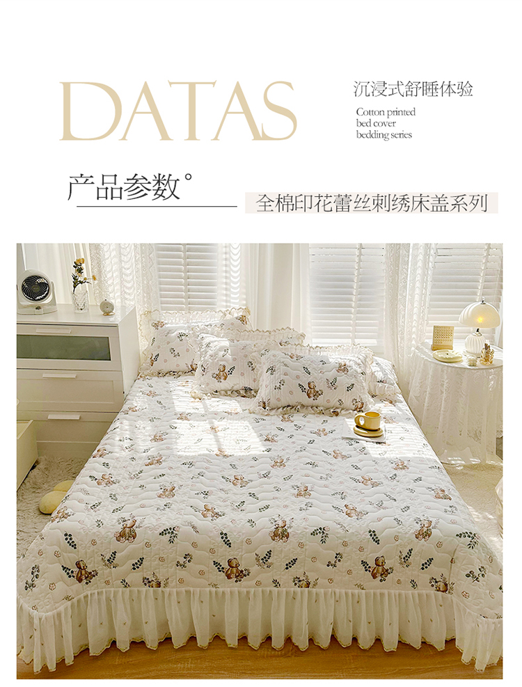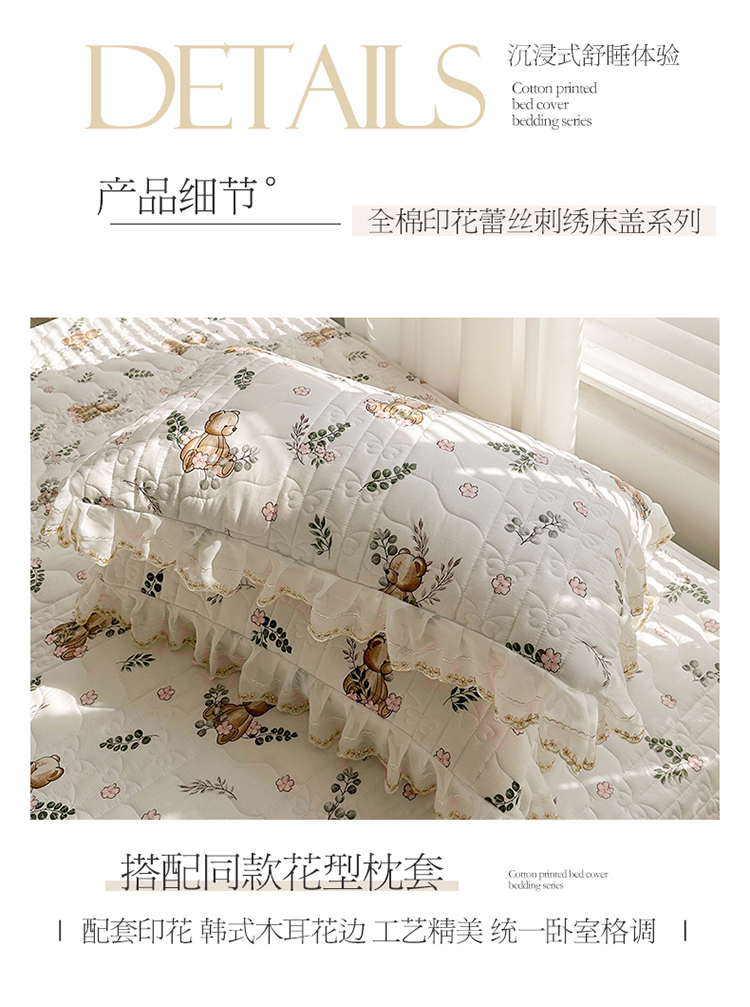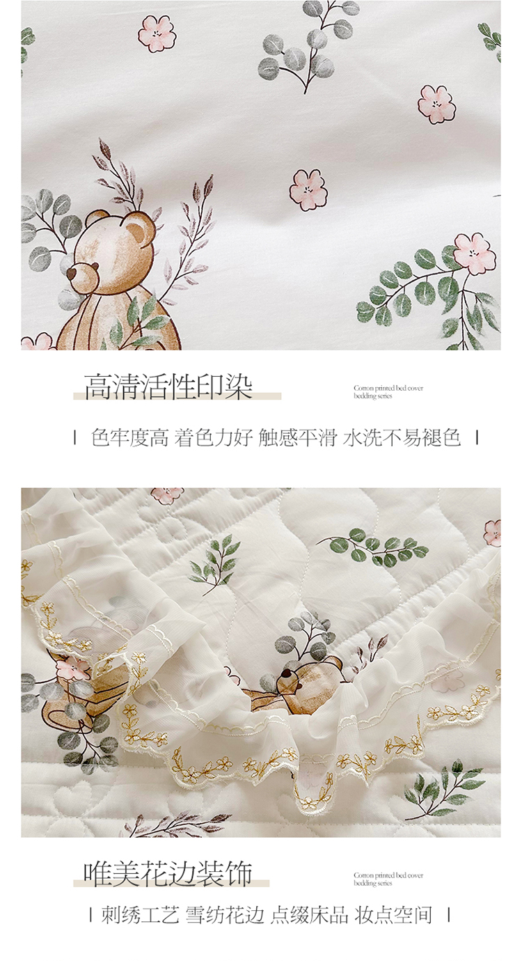 商品名称:宜凡 2023新款全棉蕾丝刺绣床盖三件套 小熊吉米