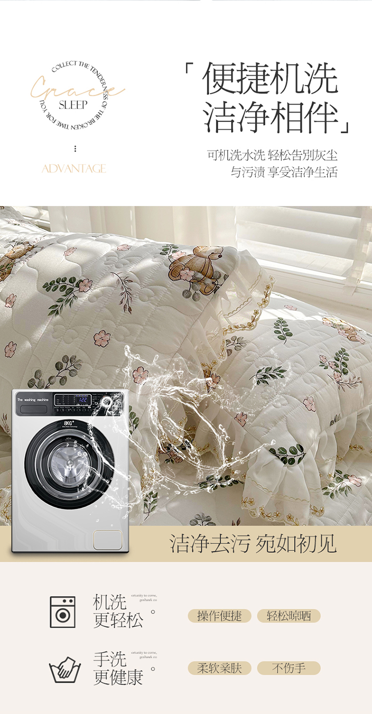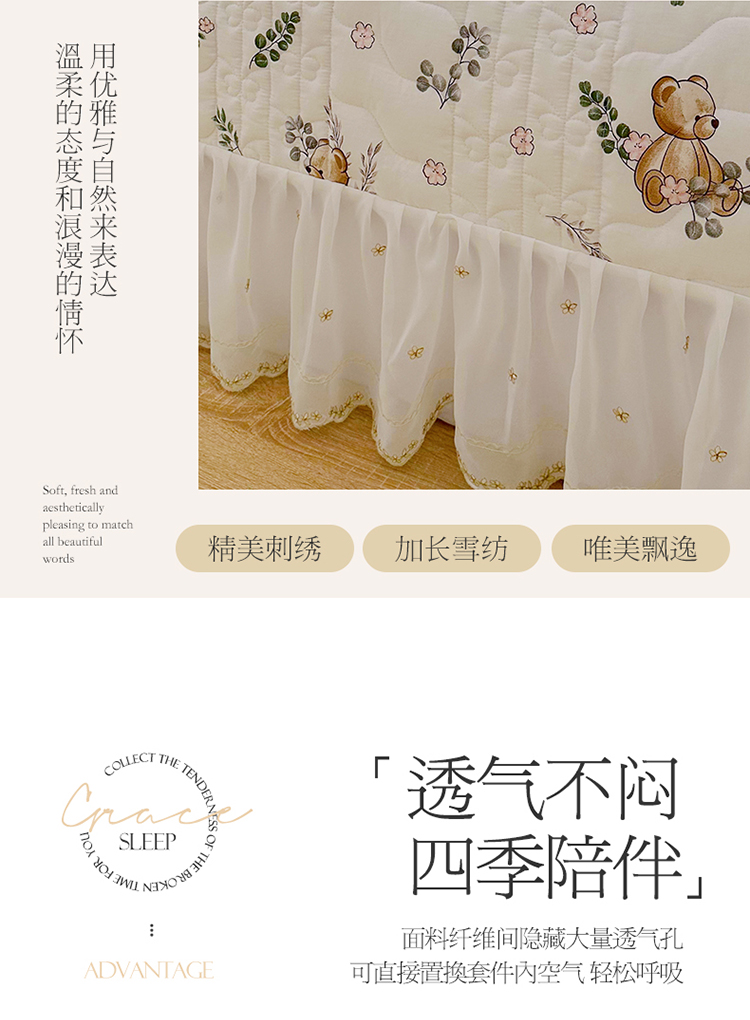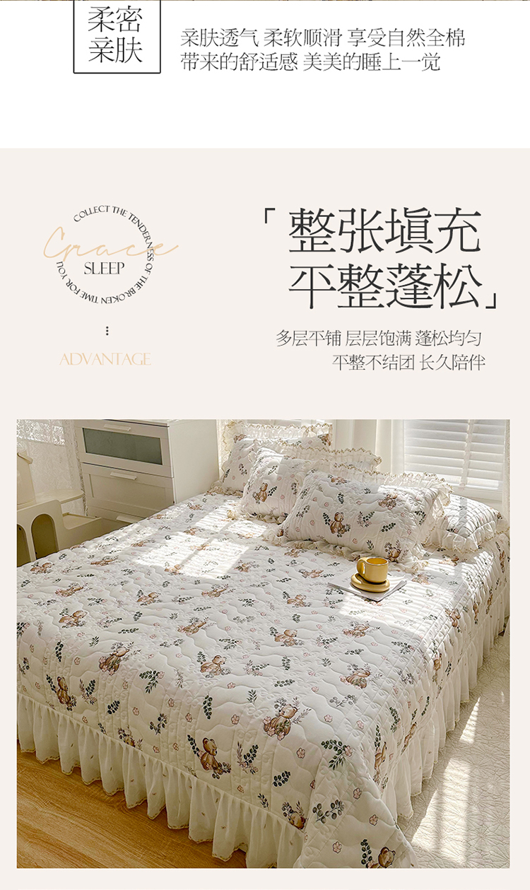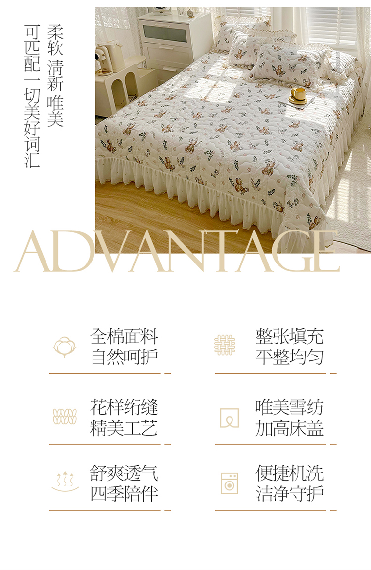 商品名称:宜凡 2023新款全棉蕾丝刺绣床盖三件套 小熊吉米