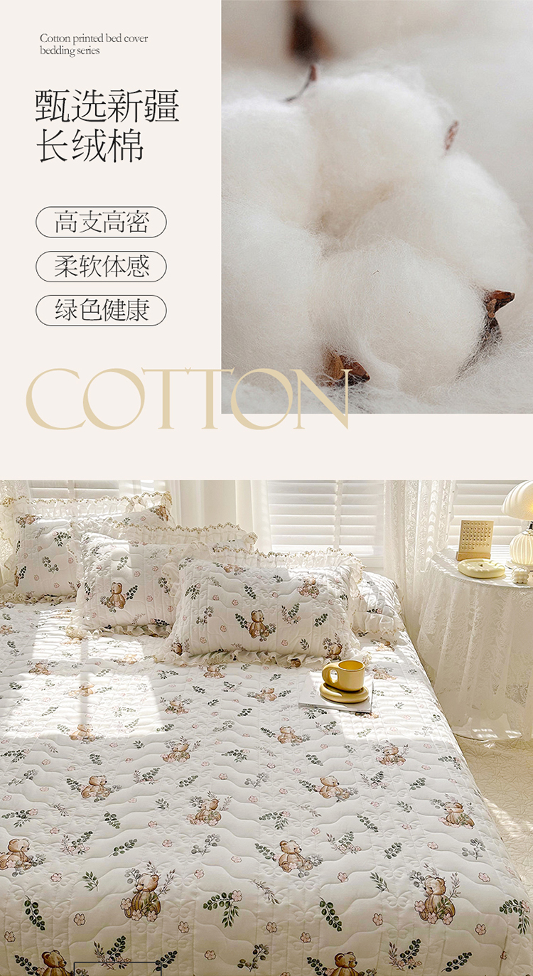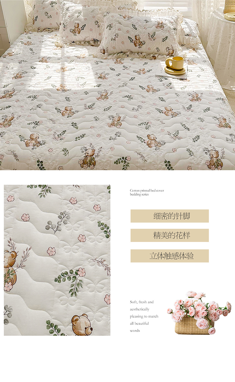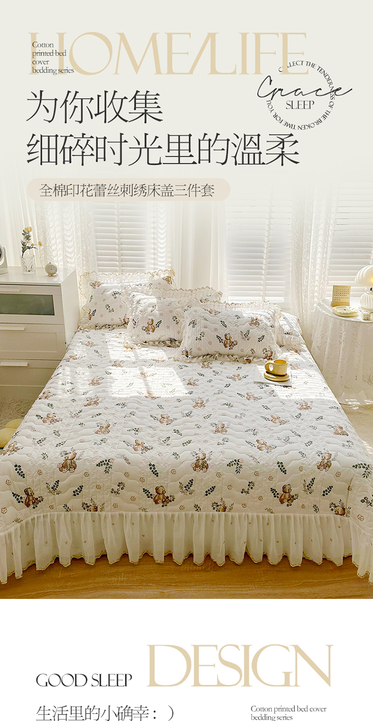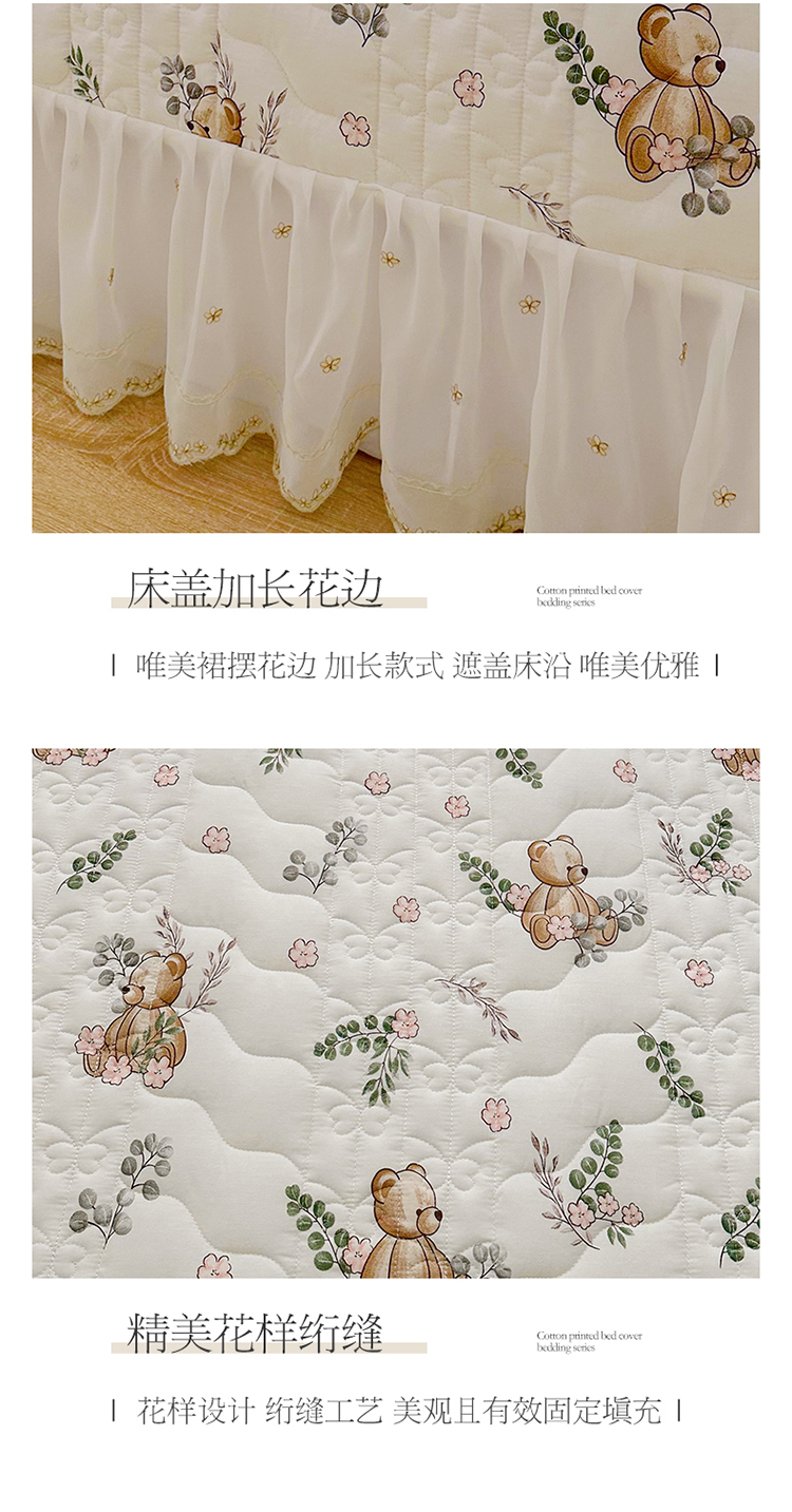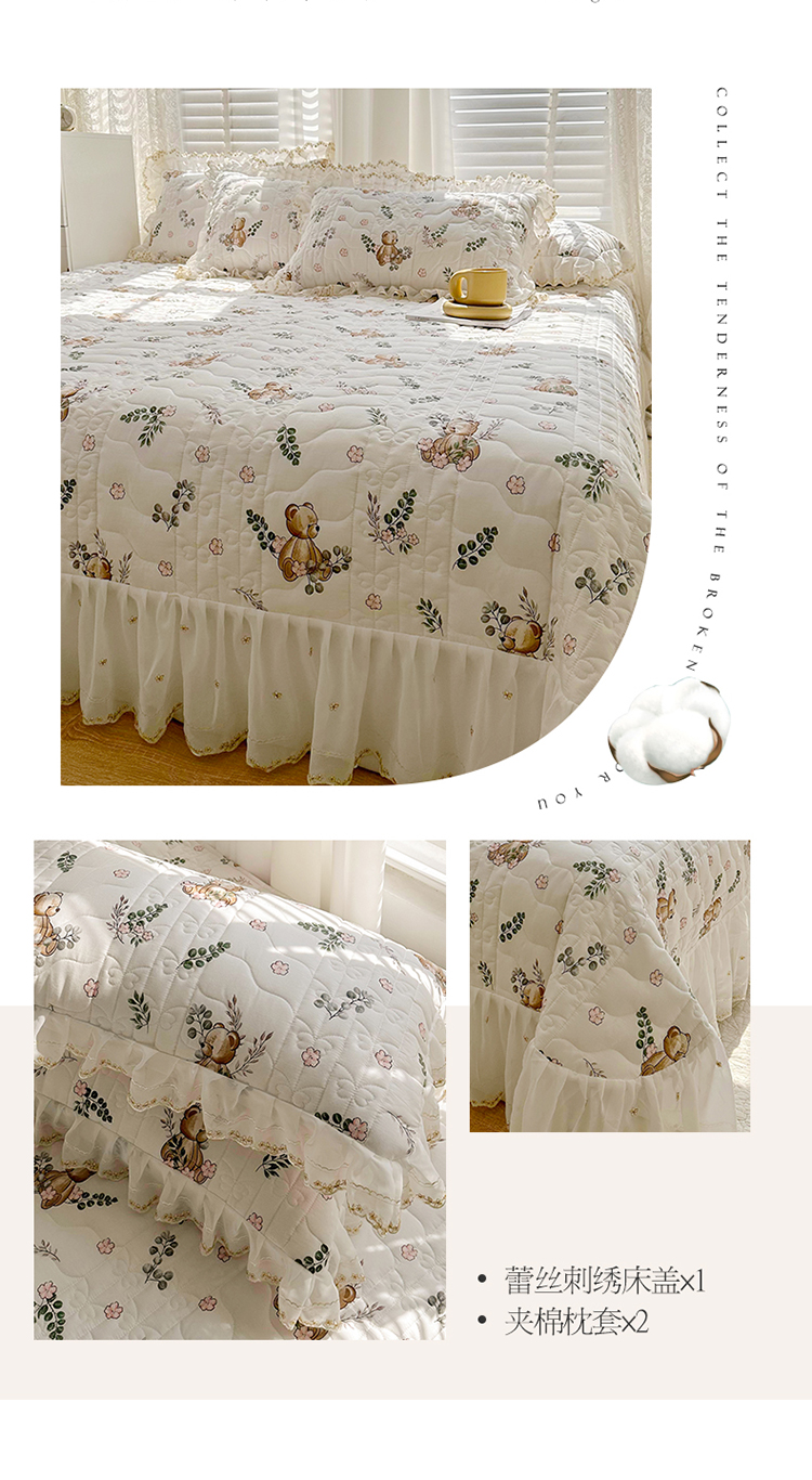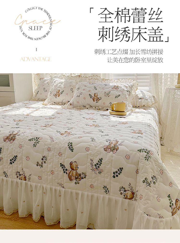 宜凡 2023新款全棉蕾丝刺绣床盖三件套 小熊吉米