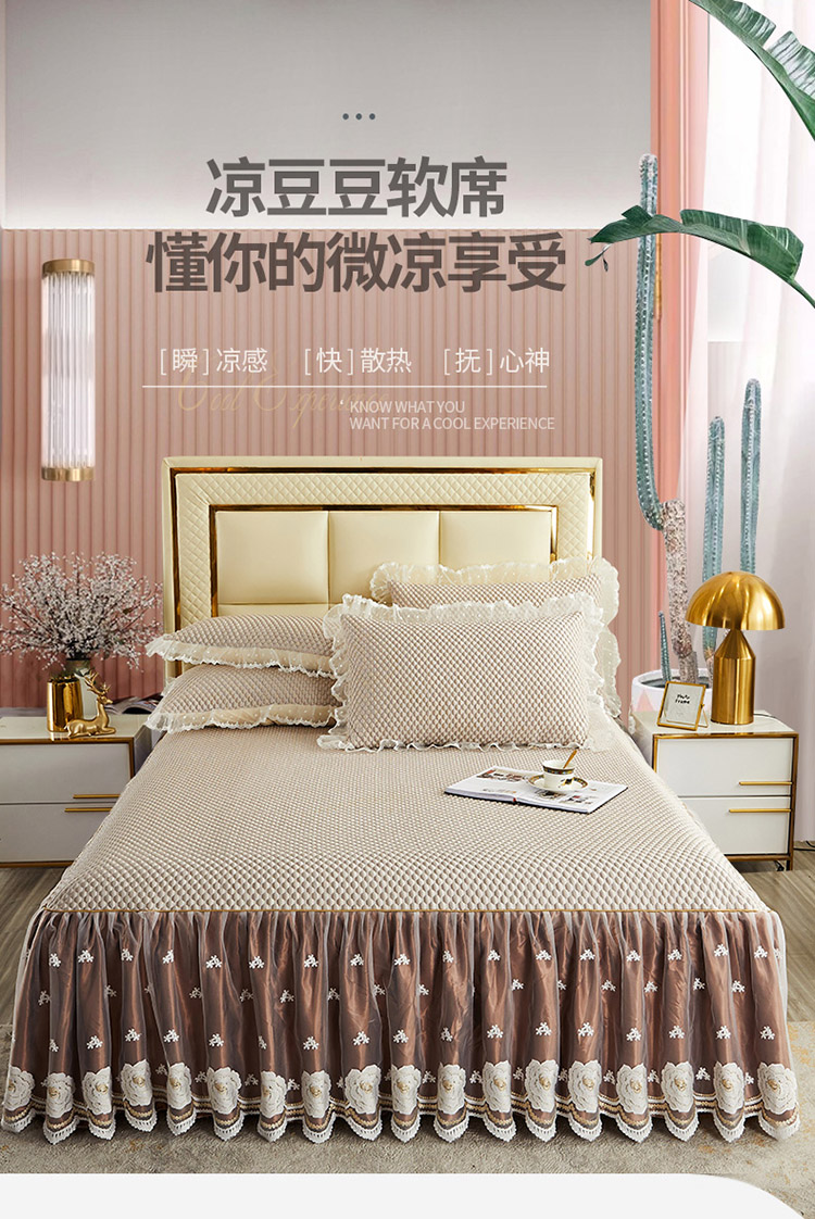 商品名称:恋尚 2023新款凉豆豆软凉席床裙款三件套 莫卡
