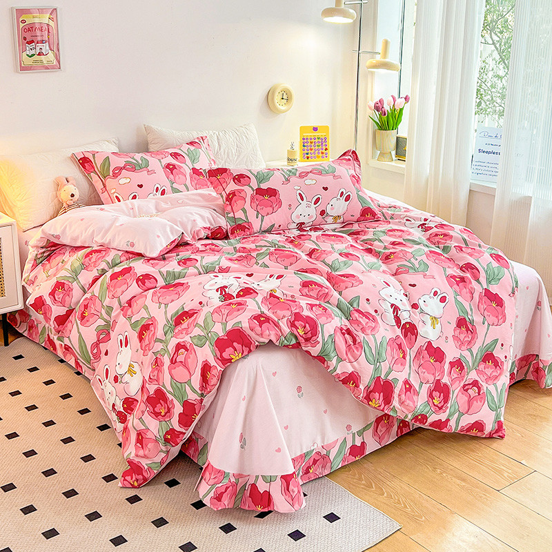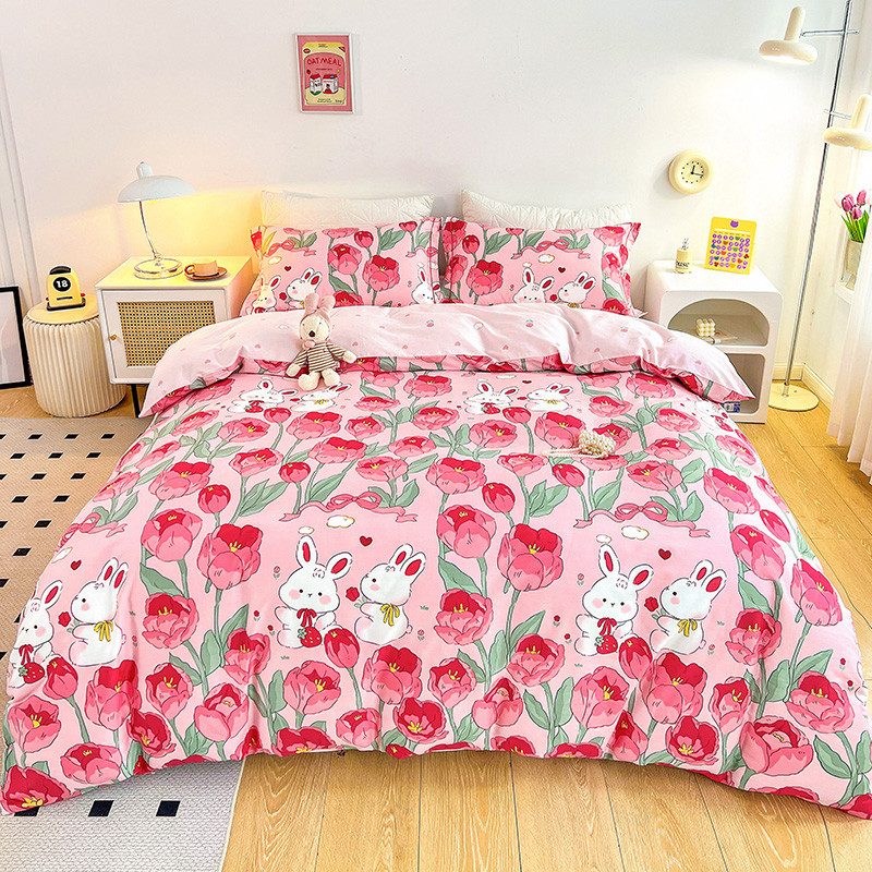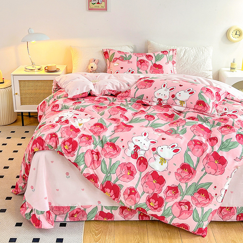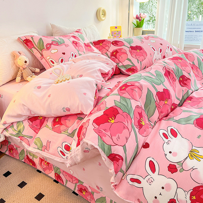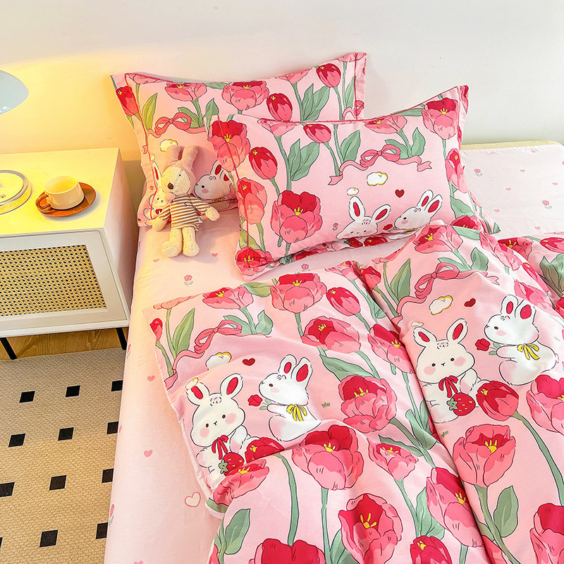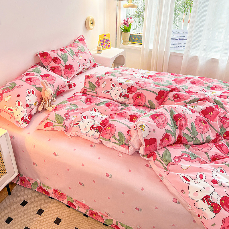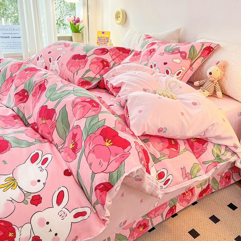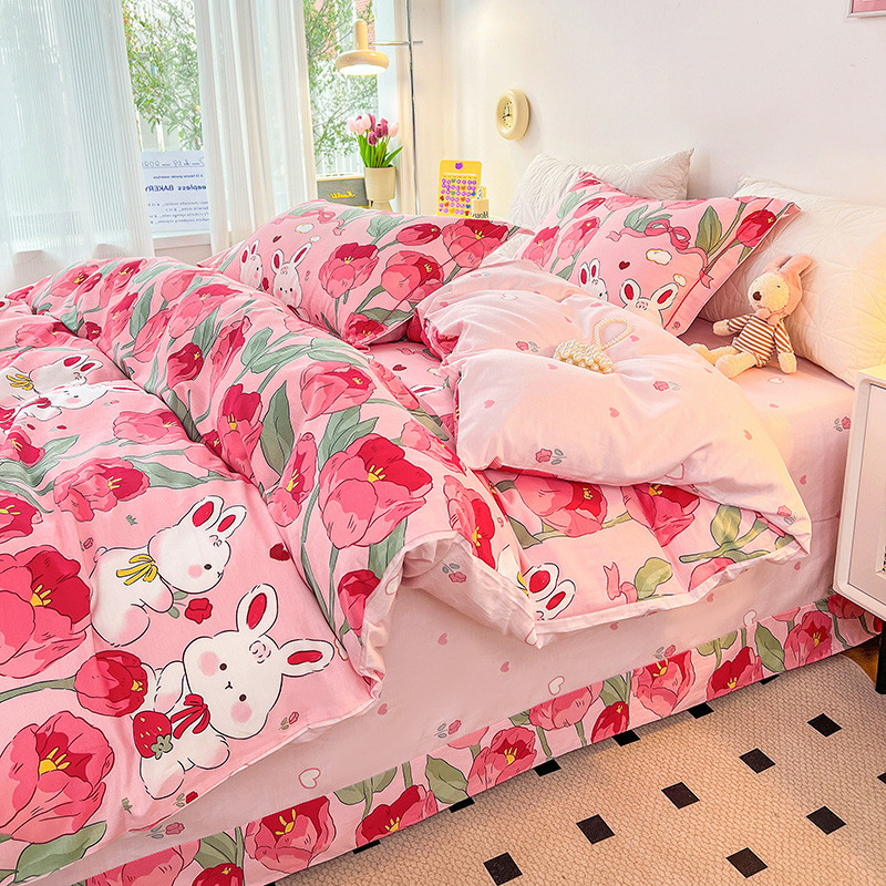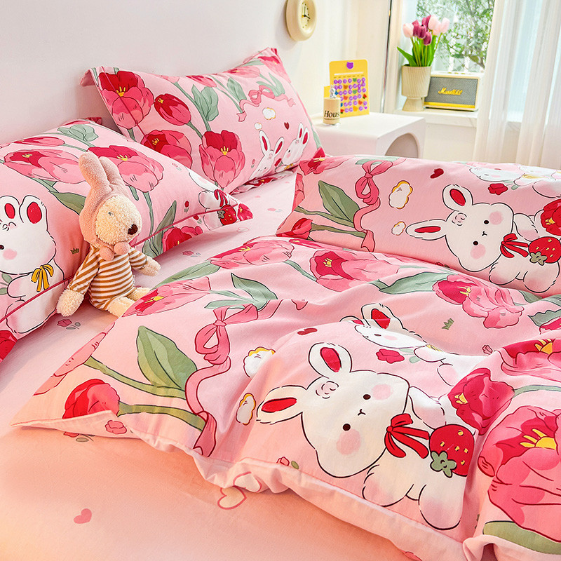 乐童2024新款网红直播爆款吊边+一字绣工艺款四件套(六)郁金香小兔